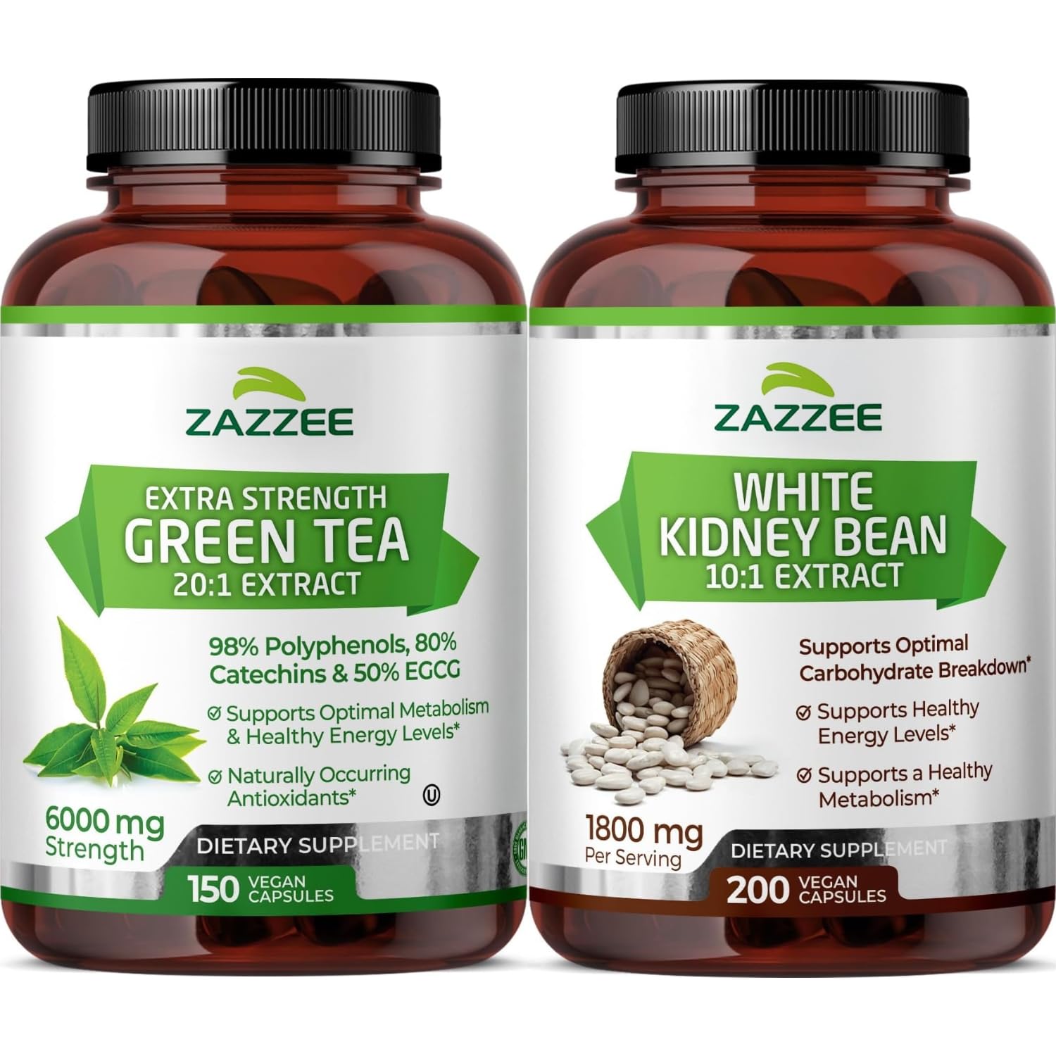Zazzee Herbal Slimming Bundle | Extra Strength White Kidney Bean Extract and EGCG Green Tea Extract Capsules | Non-GMO Vegan & ISO Lab Tested