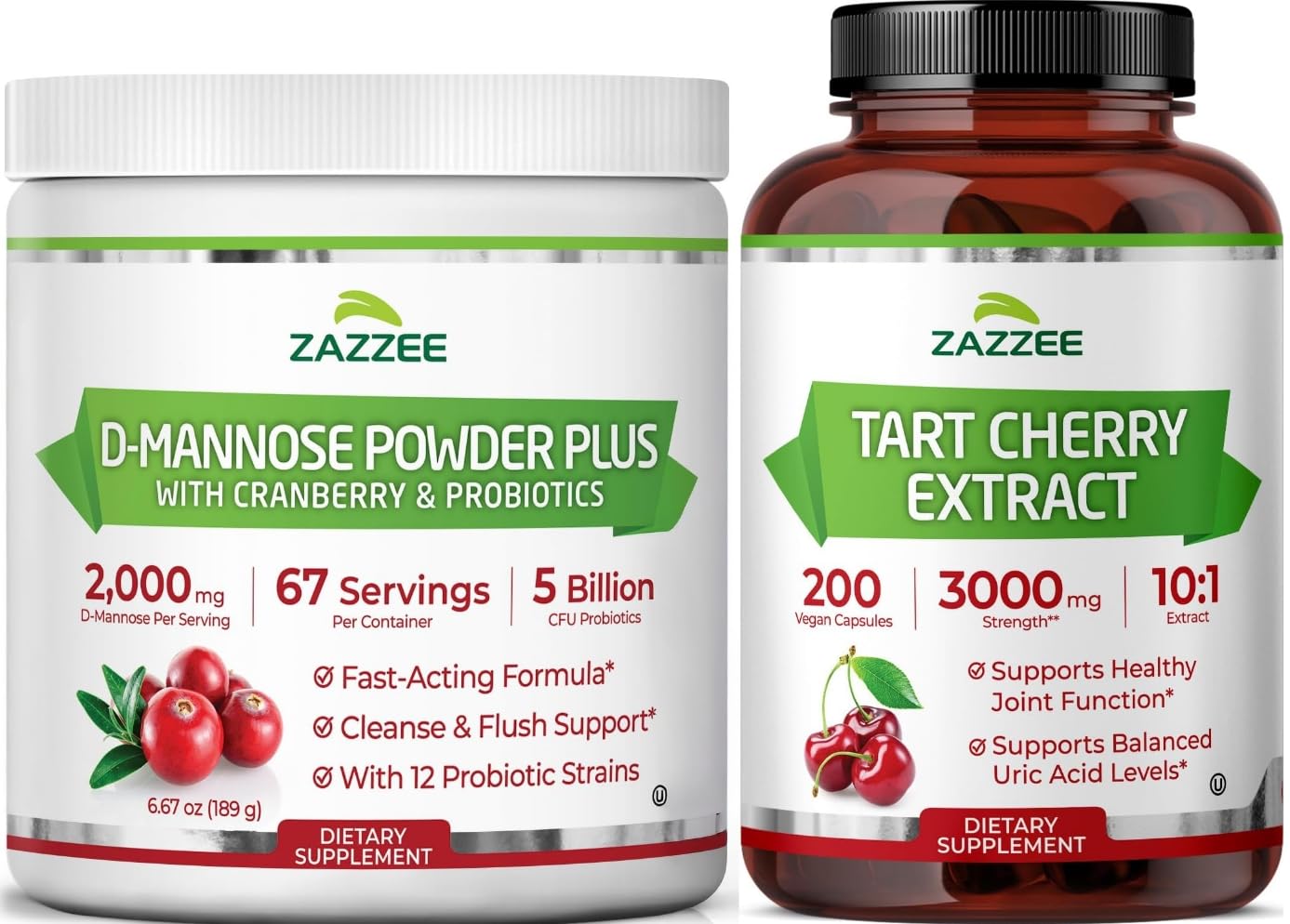 Zazzee Kidney Bladder & Urinary Tract Support Bundle | Super Concentrated Tart Cherry Extract Capsules Plus D Mannose with Cranberry Probiotics for Women | Non-GMO Vegan & ISO Lab Tested