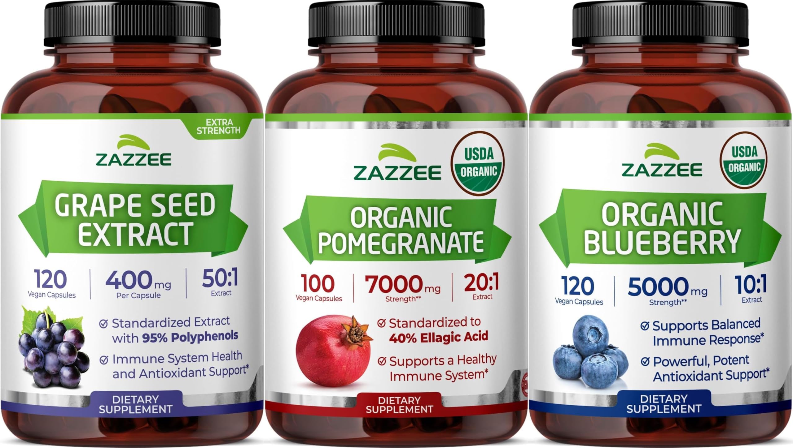 Zazzee Ultimate Anti Aging Antioxidant Bundle | USDA Organic Pomegranate with Polyphenol Rich Blueberry and Super Concentrated Grape Seed Extract Capsules | Non-GMO Vegan & ISO Lab Tested