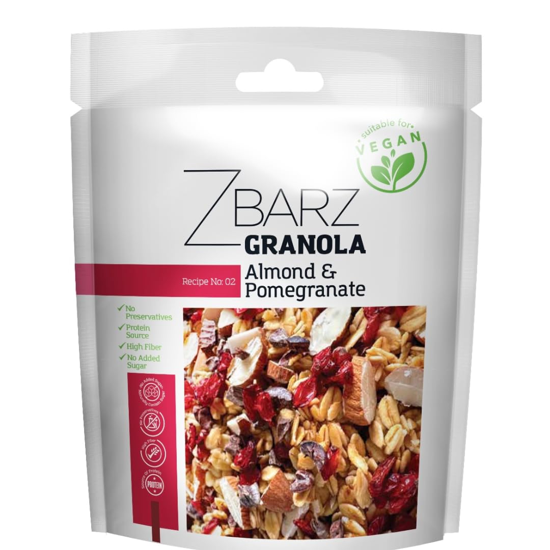 ZBARZ Zbarz Vegan Grain Protein Granola & No Added Sugar (Alammond Pomegranate 200g) - Keto Knusper Muesli Breakfast for Weight Loss and Workout - Crunchy Cereal Made from