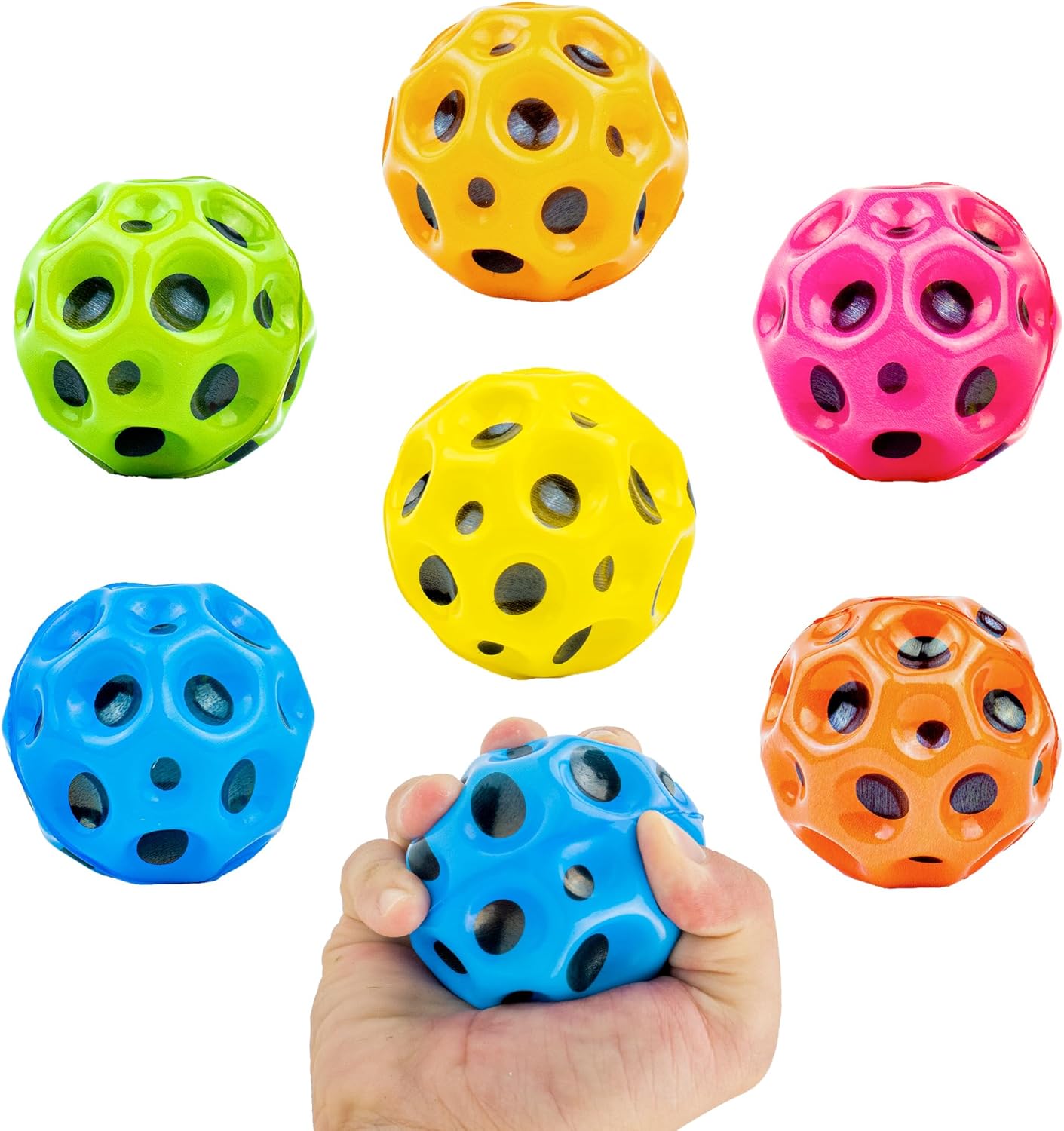 6 Pac Extreme High Bouncing Ball Meteor, Rubber Bounce Ball Stress Relief Toy,Cool Tiktok Pop Bouncing Training Ball, Multicolored Spaceballs, Easy to Grip & Catch