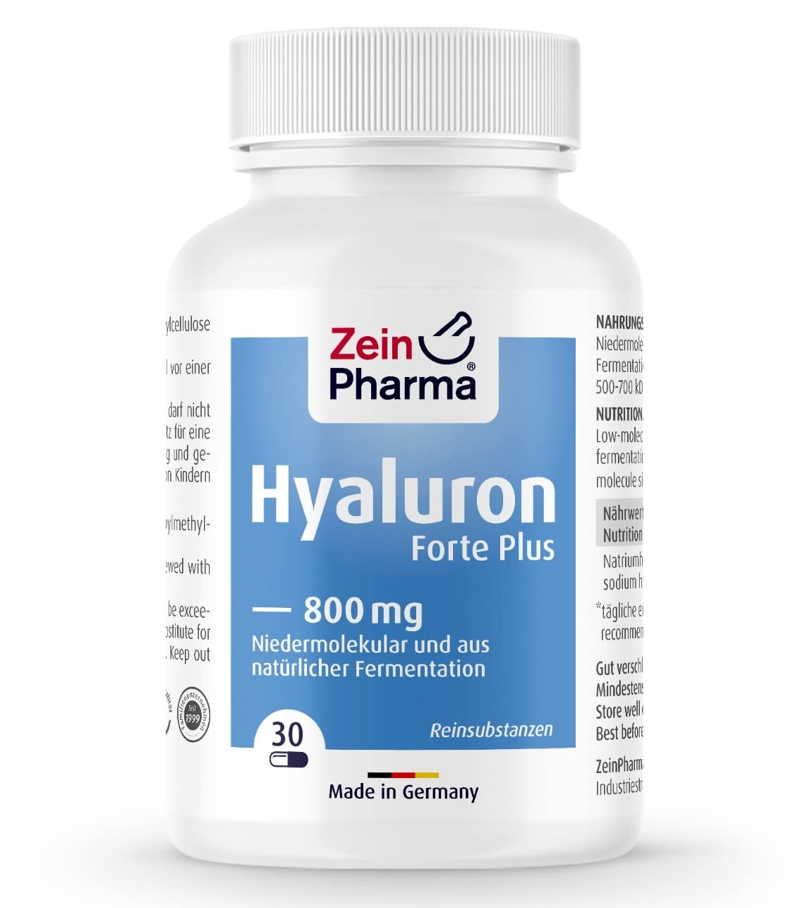 ZeinPharma Hyaluronsäure Forte Plus Kapseln 800 mg, 500-700 kDa - 30 vegane Kapseln aus natürlicher Fermentation