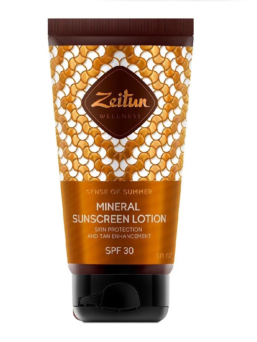 ZEITUN Wellness Sun Ritual Sunscreen Body Milk 150 ml. Enjoy every moment in the hot summer sun with this SPF 30 body milk. The natural formula with a mineral filter, Macadamia and Babassu oils, Boswellia, Beta-Carotene, and Carrot Seed Oil provides high protection against UV rays, sunburn, and photoaging, while leaving skin with an even and long-lasting bronze tan. A nourishing complex of oils effectively prevents flaking and dehydration, keeping skin soft and nourished, and the juicy fruity scent with notes of Pear, Jasmine, Vanilla, and Sandalwood provides absolute pleasure during application. It leaves no stickiness, marks on clothing, or clogs pores. Ingredients: aqua, caprylic/capric triglyceride, titanium dioxide, cetearyl alcohol, polyhydroxystearic acid, glyceryl stearate, aluminum stearate, glycerin, butyrospermum parkii (shea) butter, macadamia ternifolia seed oil, simmondsia chinensis (jojoba) seed oil, orbignya martiana seed oil, daucus carota sativa (carrot) seed oil, helianthus annuus (sunflower) seed oil, hydroxyethyl urea, ethylhexyl palmitate, sodium stearoyl lactylate, sodium lauroyl glutamate, daucus carota sativa (carrot) root extract, beta-carotene, dipropylene glycol, boswellia serrata gum, tocopheryl acetate, ascorbyl palmitate, xanthan gum, tocopherol, allantoin, alumina, benzyl alcohol, ethylhexylglycerin, parfum, benzyl salicylate, limonene, linalool.