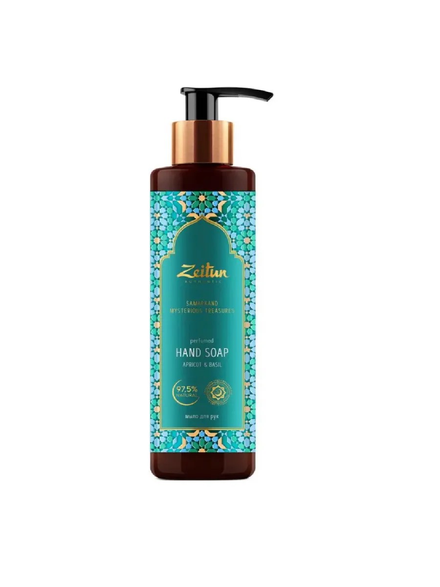 Zeitun. Liquid Soap "Mysterious Treasures of Samarkand," 200 ml. Take a wonderful journey into the world of oriental aromas of Samarkand! A bright, exciting composition of notes of apricot, basil, mandarin, and vanilla. This hand soap gently cleanses without drying out the skin. Melissa essential oil soothes irritation, while allantoin and panthenol provide intense hydration. Free of silicones and parabens. The fragrance is suitable for both women and men.