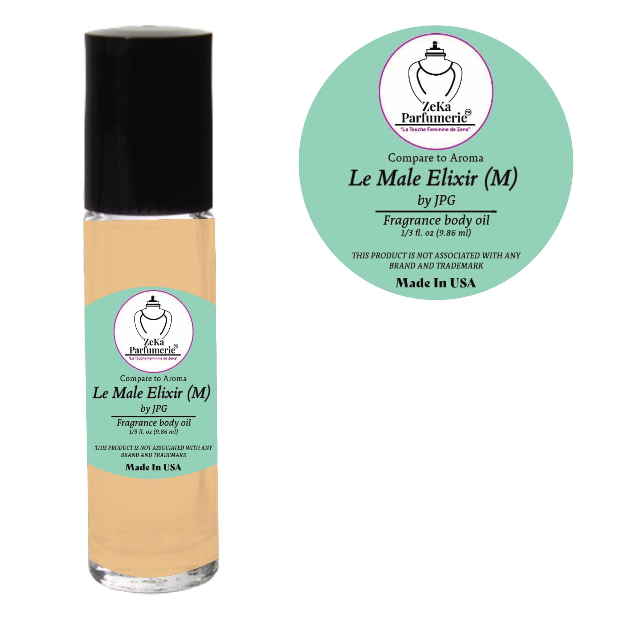 ZEKA PARFUMERIE Compare to Aroma Compatible with Le Male Elixir by JPG for Men Fragrance Body Oil on 1/3 oz (9.86ml) Travel Size Roll-On Botlle