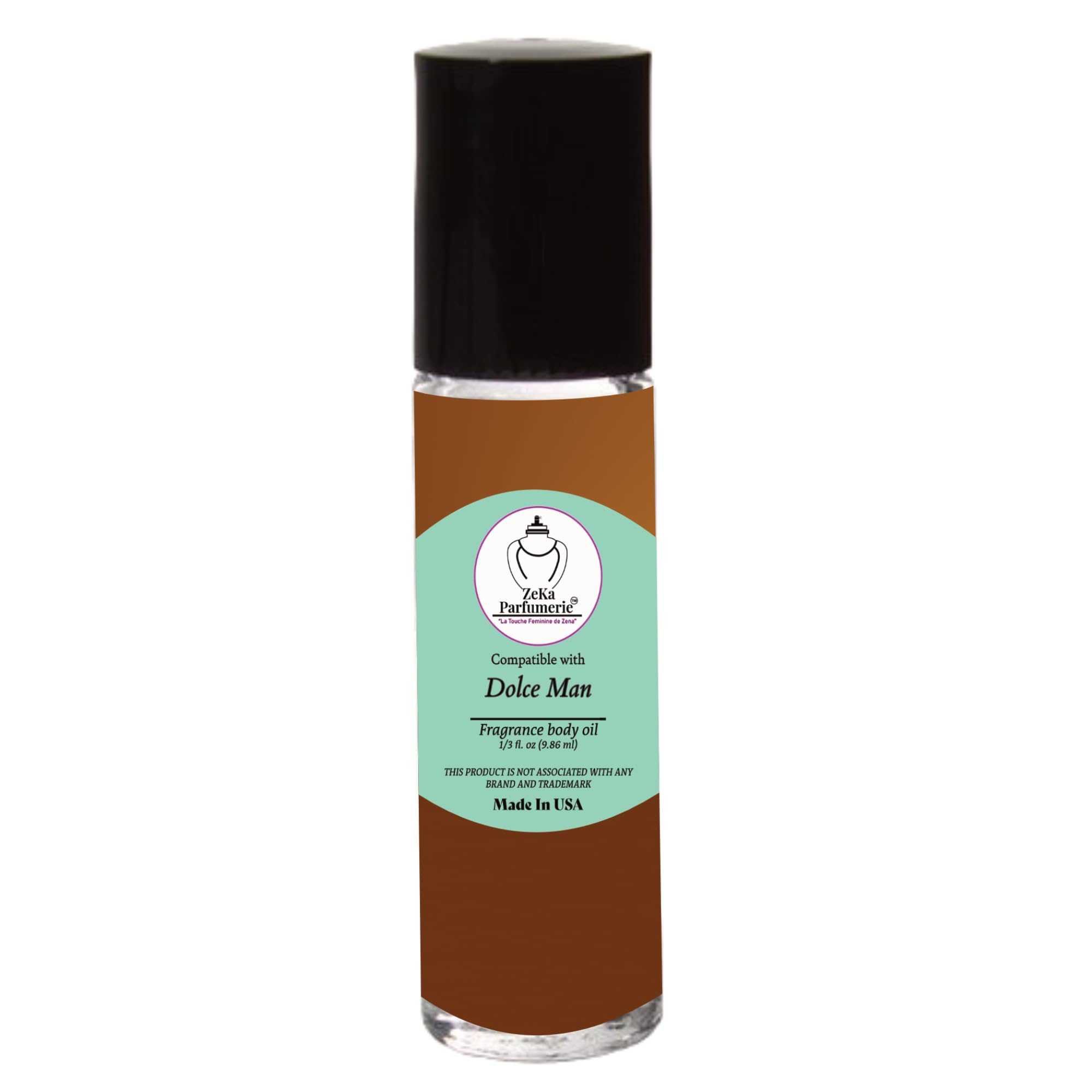 ZEKA PARFUMERIE Dolce Man (M) Fresh Citrus Aromatic & Woody Fragrance Body Oil for Men Alcohol-Free Perfume Oil Roll-On Long Lasting Made in USA 1/3 fl oz (9.86 ml) Free Economy Shipping