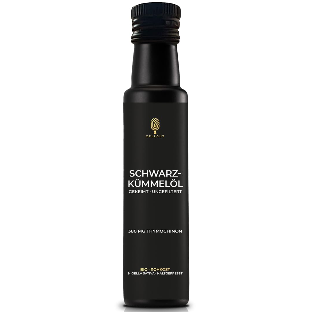 ZELLGUT Organic Black Cumin Oil - Pure, gently cold-pressed, sprouted, and virgin - Made with original Egyptian black cumin - Freshness guaranteed: direct from the manufacturer - 380 mg of THYMOCHINON INGREDIENTS Black cumin seed oil DIRECTIONS 1 to 2 teaspoons per day See more