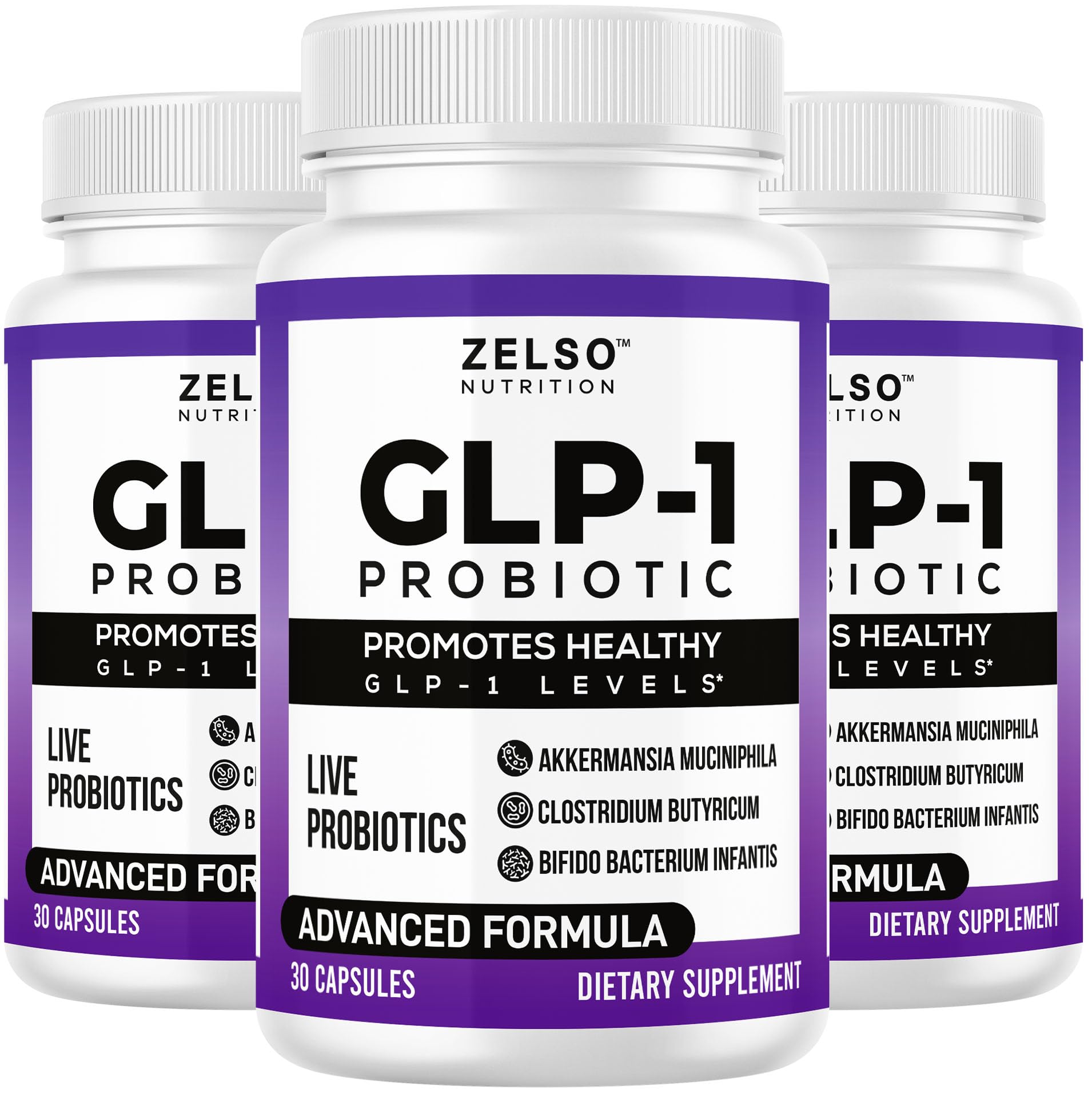 ZELSO (3 Pack) GLP-1 Probiotic with Akkermansia Muciniphila - Gut Health Support with GLP 1 Live Probiotics 500M CFU Multi-Strain Probiotic + Prebiotic GLP1 Naturally Plus - 90 Capsules