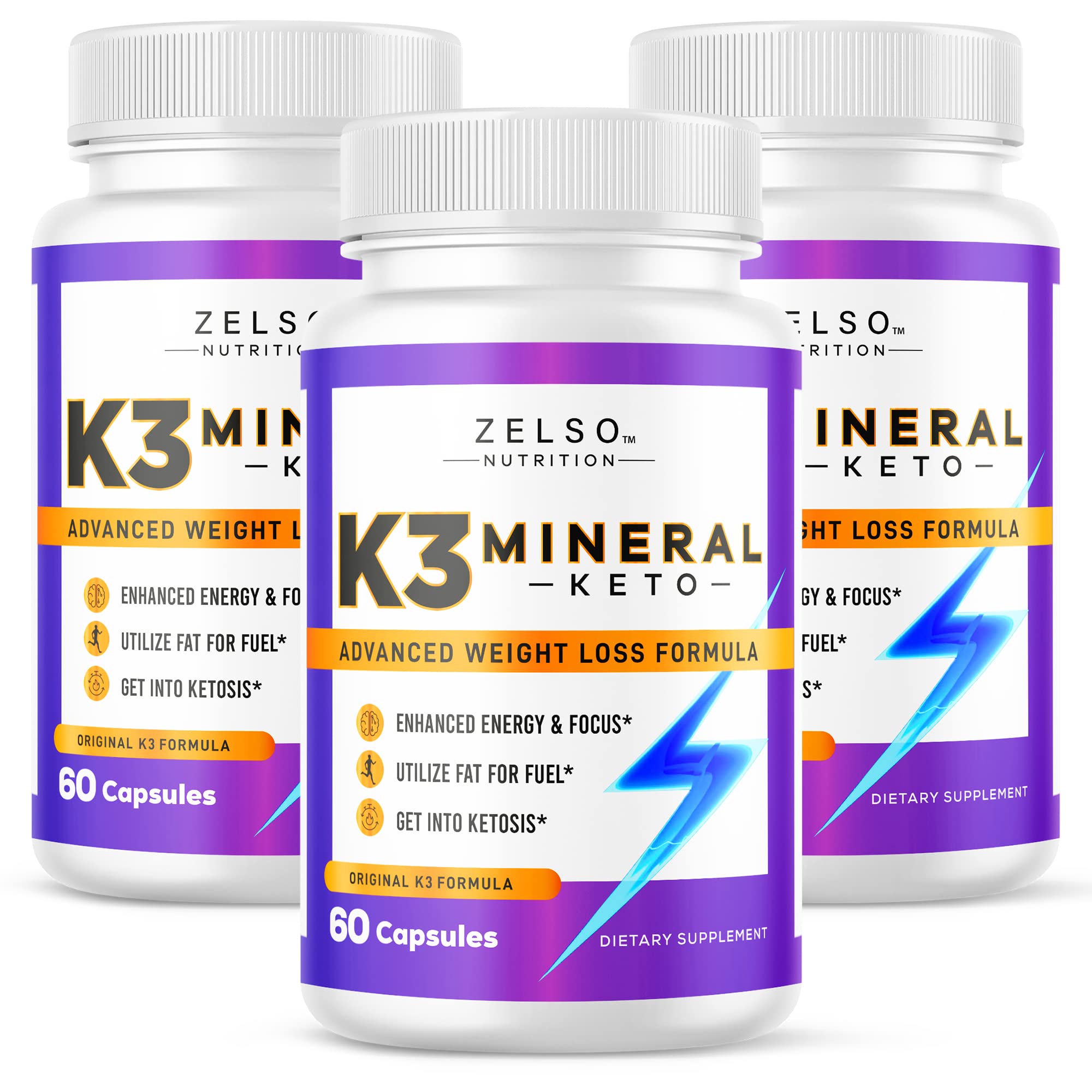 ZELSO (3 Pack) K3 Mineral Weight Loss Pills for Women and Men K3 Mineral Pills - K3 Salt Mineral Vitamin + K3 Capsules Supplement for Keto Weight Loss - 3 Months Supply 60 Count (Pack of 3)