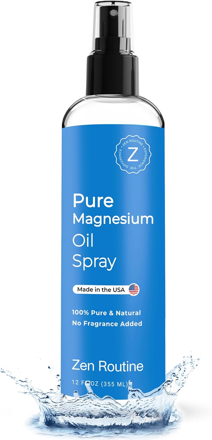 Zen Routine Pure Magnesium Oil Spray Fast Absorbent 100% Organic Magesium Oil Magnesium Spray for Feet - 12 FL Oz