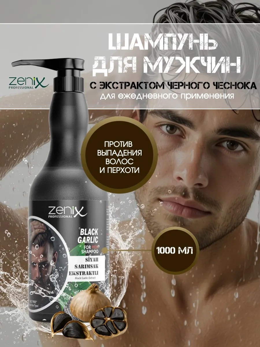 Zenix Шампунь для мужчин Zenix BLACK GARLIC 1000 МЛ