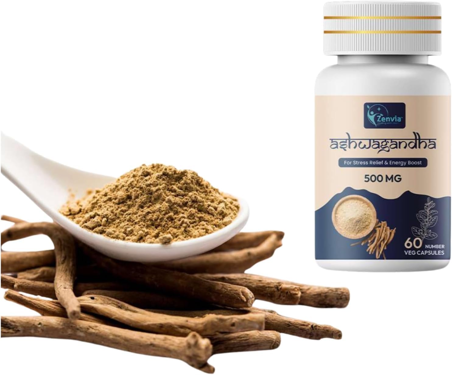 ZENVIA Ashwagandha Capsules 500mg 60 Veg Capsules Herbal Supplement from Root Extract Natural Daily Wellness Support