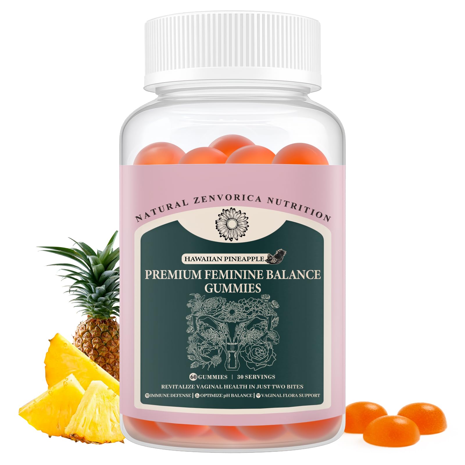 Zenvorica Premium Feminine Balance Gummies for Women - Hawaiian Pineapple pH Balance Probiotic Gummies for Odor and Flora Wellness Immune Support Vegan 60 Count