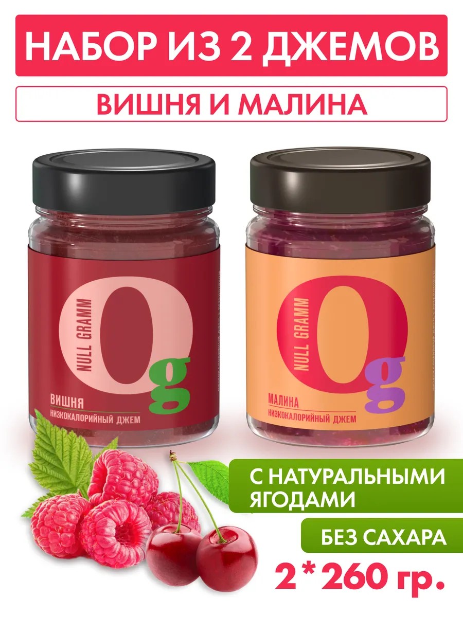 Джем без сахара вишня и малина, 2шт по 260гр