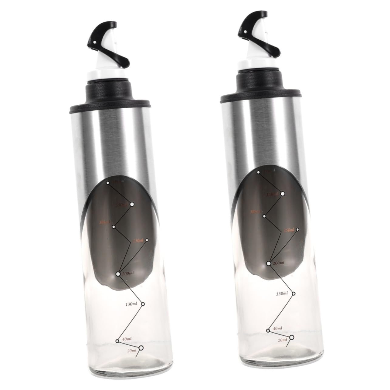 Zerodeko Glass Oil Bottle 2pcs Condiment Bottles Vegetable Oil Metal Glass Condiment Dispenser 27.5X7CMx2pcs Silverx2pcs