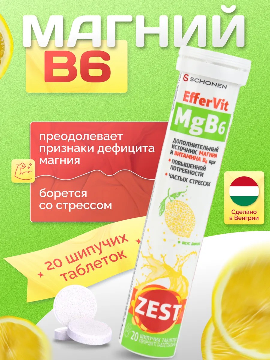 Zest EfferVit Mg B6 рекомендуется как дополнительный источник витаминного и минерального комплекса в виде растворимых таблеток.