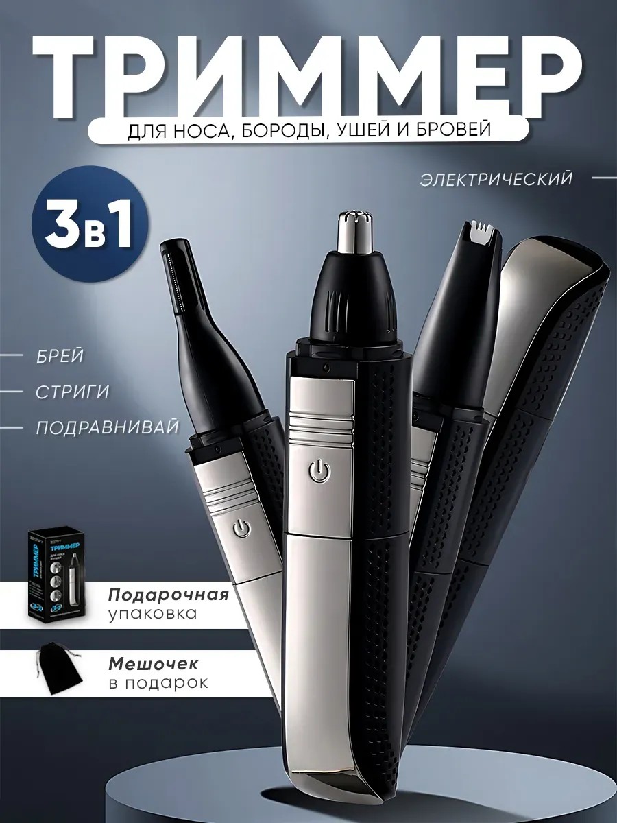 Триммер для носа и ушей 3 в 1 с фонариком в подарок станет вашим отличным помощником.