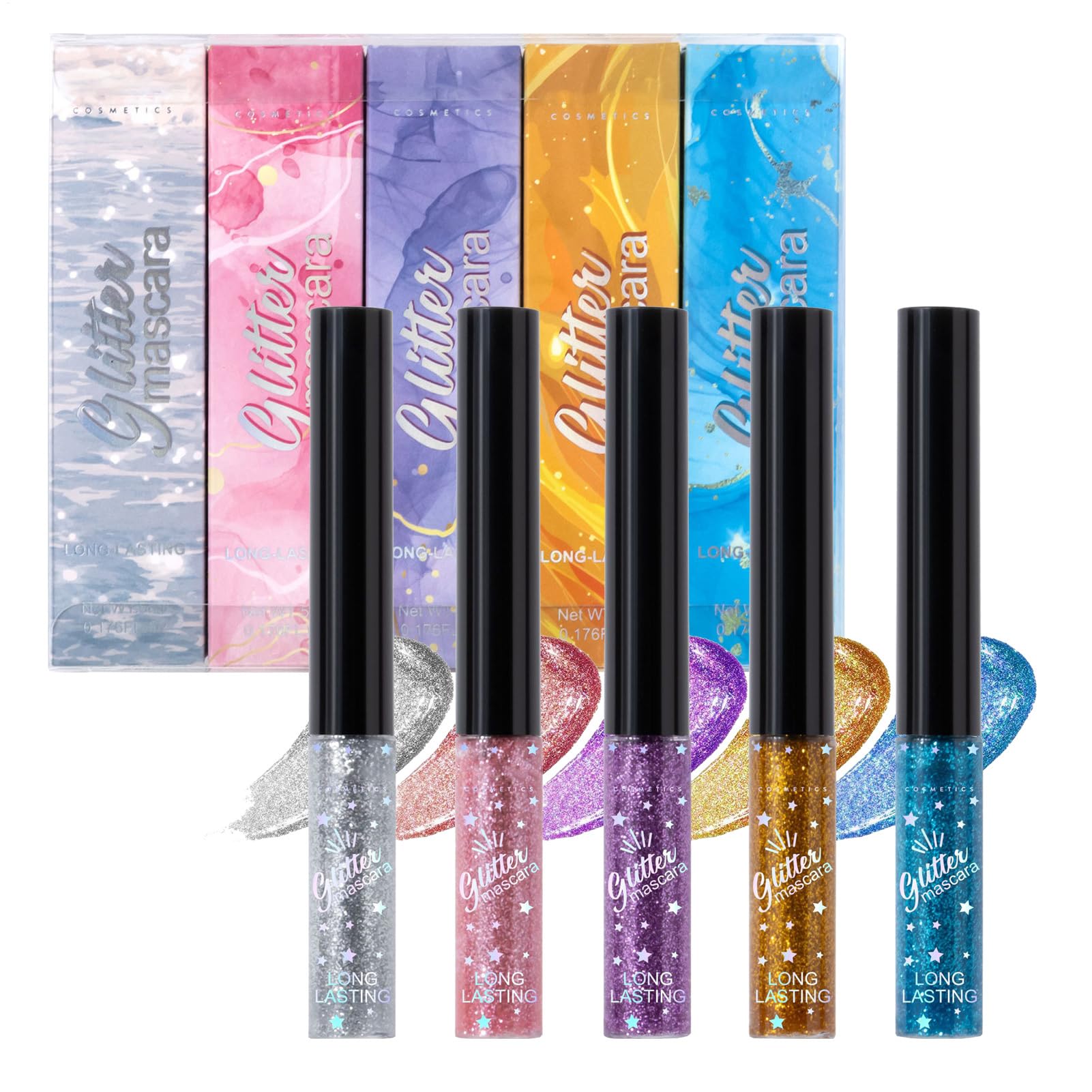 Zestivra Glitter Mascara for Women - 5x Lengthening Mascara Smudge-Resistant Eyelash Primer Ideal for Cosplay Weddings Stage Performances and Parties