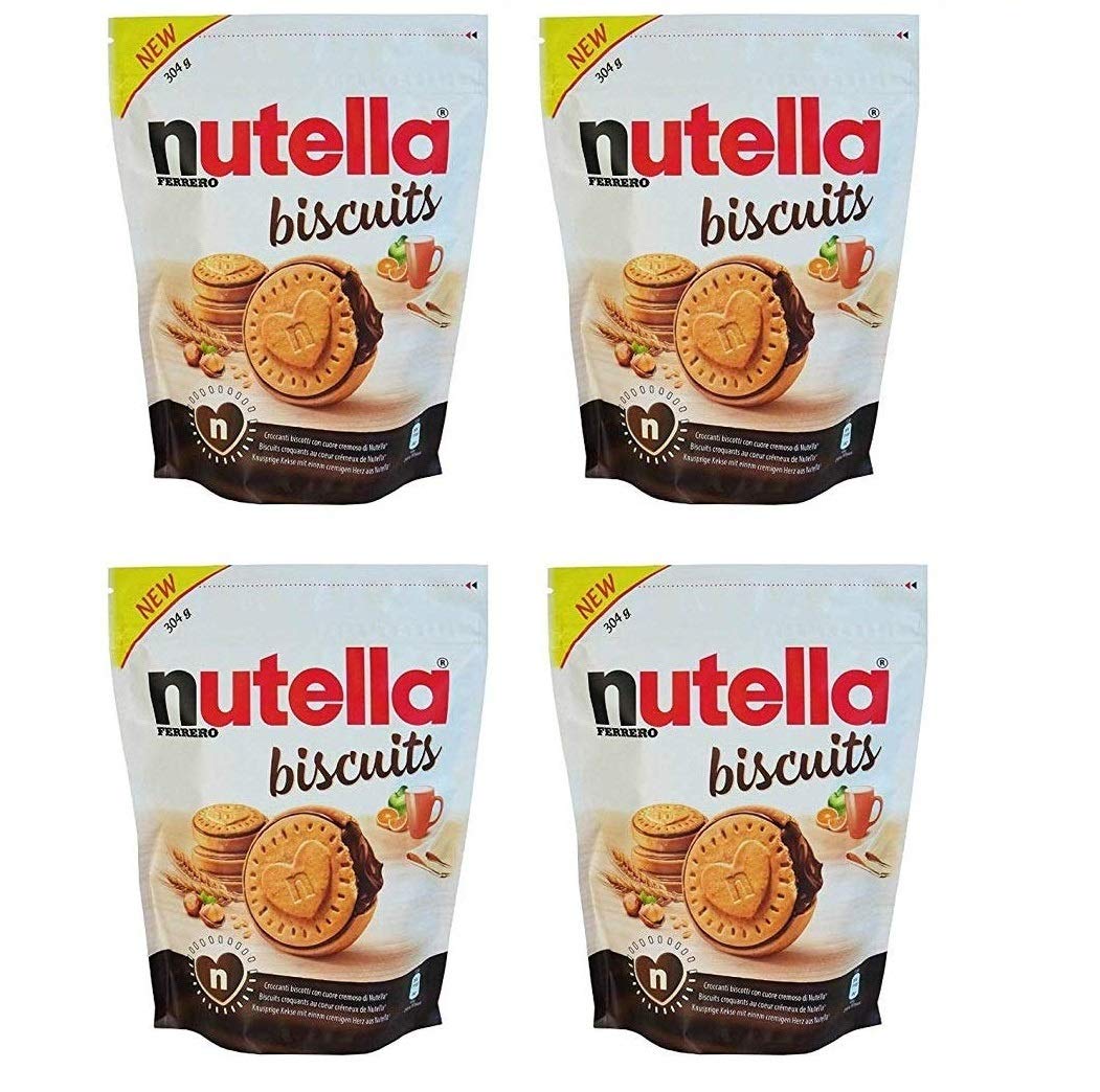 Lot de 4 paquets de 304 g de NUTELLA BISCUITS, biscuits croustillants au cœur doux farci du goût unique de NUTELLA FERRERO, 4 x 304 gr
