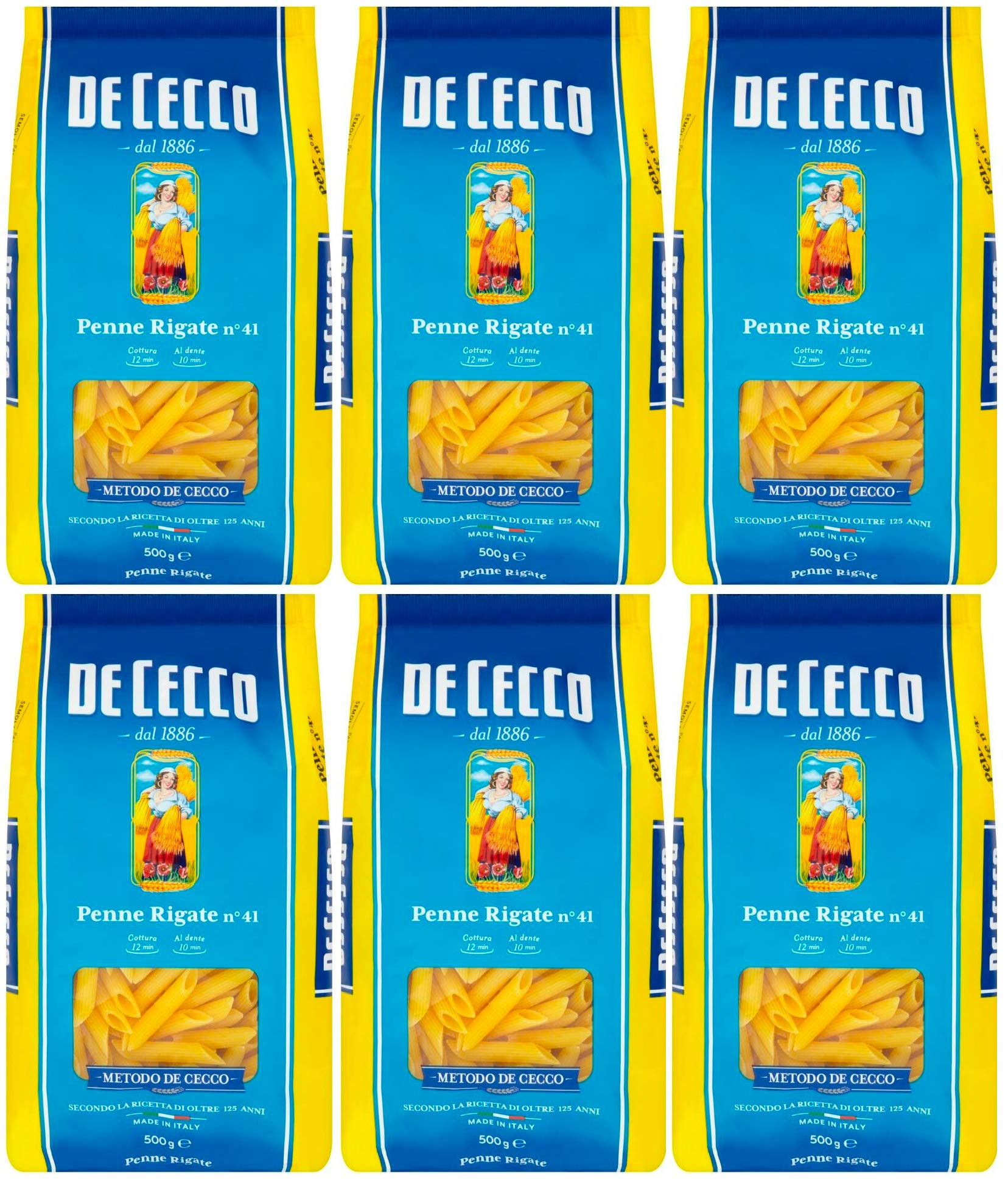 De Cecco - Penne Rigate n 41, Pâte de Semelle de Grain Dur - 500 g 6 Paquets