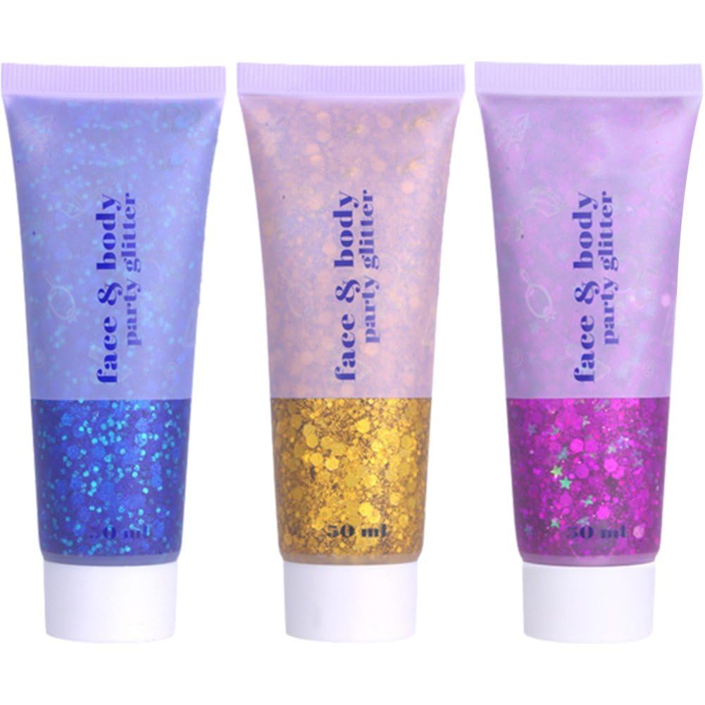Features: Color: As shown in the picture Dimensions: 115 x 45 x 30 mm Volume: 50 ml Package Contents: 3 pieces Note: The actual color may differ slightly from the image due to variations in lighting and screen settings. Please allow for slight size differences due to manual measurement.Safe, natural ingredients: The ingredients in this glitter gel are 100 safe and non-irritating. You don't have to worry about the glue irritating your skin the glitter gel protects your skin from the glitter. It's also very child-friendly. Sparkling Glitter Gel This is body and face glitter gel, suitable for all skin types. It features small stars, moons, and hexagonal glitter, which are very bright and beautiful, making makeup more attractive and appealing. Various Shapes and Colors 3 colors to choose from. A large number of holographic glitter particles appear to change color and brightness depending on the angle, like a rainbow. Wide Applications This large, shimmering glitter gel is perfect for use all over the body: face, body, lips, cheeks, collarbones, shoulders, nails, and more. It's especially suitable for performances, dates, and Christmas parties. Easy to Apply and Clean Up (No Gel Needed) These large mermaid-shaped body glitters are a sticky glitter body gel no glue is needed. Apply to the body with a spatula, sponge, or brush. Easily remove with soap or shower gel and water.Gel pailleté pour le visage, 3 bocaux de maquillage à paillettes holographiques pour le corps, le visage, les ongles, les fard à paupières, les paillettes liquides avec paillettes sirène longue duréeDESCRIPTION DU PRODUIT Caractéristiques : Couleur : comme sur le Dimensions : 115 x 45 x 30 mm. Contenu : 50 ml. Contenu de l'emballage : 3 pièces. Remarque : La couleur du projet peut être légèrement différente de l'image en raison des différents paramètres d'éclairage et d'écran. En raison de la différence de mesure manuelle, veuillez permettre une légère différence de taille.Ingrédients naturels sûrs : les ingrédients de ce gel pailleté sont 100 sûrs et non irritants, vous n'avez pas à vous soucier que la colle irrite la peau, le gel pailleté peut protéger votre peau des paillettes. Bien sûr, il est également très amical pour les enfants. Gel pailleté brillant Il s'agit de paillettes pour le corps et le visage avec gel, adaptées à toutes les peaux. Il y a de petites étoiles, de petites lunes et de paillettes hexagonales, qui sont très brillantes et magnifiques, ce qui rend le maquillage plus attrayant et attrayant. Diverses formes et couleurs 3 couleurs au choix. Un grand nombre de paillettes holographiques, la couleur et la brillance des paillettes varient selon la perspective, comme un arc-en-ciel. Large applications Ce gros gel à paillettes scintillantes est parfait pour le corps à la tête des pieds : visage, corps, lèvres, joues, clavicules, épaules, ongles et autres, particulièrement adapté pour les spectacles, rendez-vous, fêtes de Noël. Appliquer et nettoyer facilement (Pas besoin de gel) Les paillettes pour le corps gros en forme de sirène sont un gel pour le corps pailleté collant, pas besoin d'utiliser de la colle lorsque vous l'utilisez. Appliquer sur et corps avec des pointes, une éponge ou un pinceau. Enlever facilement avec du savon ou du gel douche et de l'eau.
