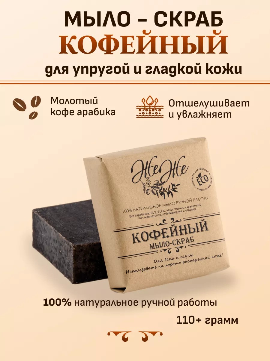 100% Натуральный Кофейный Мыло-Скраб от ЖеЖе идеален для расслабляющего ухода за кожей всего тела.