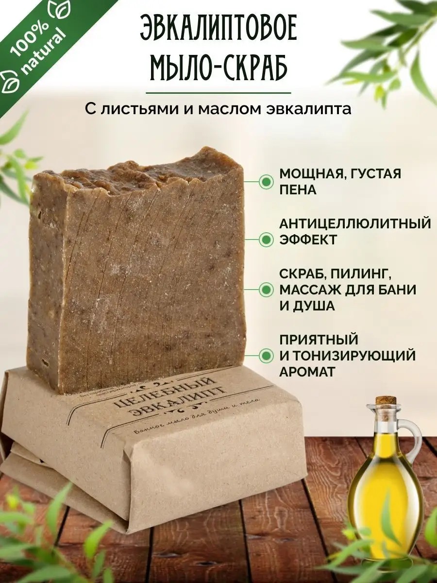 ЖеЖе Натуральное Мыло скраб для бани Эвкалиптовое