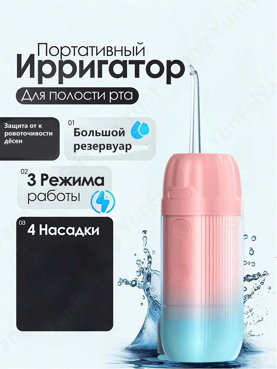 • Компактный и портативный дизайн этого ирригатора позволяет легко брать его с собой в поездки или на работу. Он не занимает много места в сумке и может быть использован в любом месте, что делает его удобным решением для поддержания гигиены полости рта в любых условиях.
