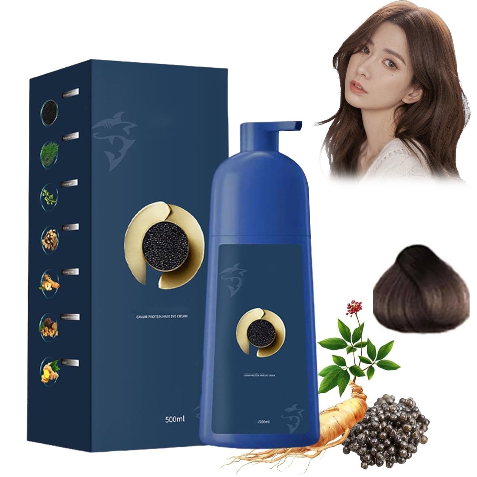 Features: Product Name: Caviar Hair Dye Cream Color: Natural Black, Dark Brown, Coffee Brown, Tea Brown, Chestnut Brown Net Content: 500ml Shelf Life: 3 Years Suitable For: All Hair Types Coloring Time: Black Hair (15-25 minutes), Colored Hair (45-50 minutes) Package Included: 1 Bottle Herbal Hair Dye Cream Note: 1. Due to the light and screen setting difference, the item's color may be slightly different from the pictures. 2. Please allow slight differences due to manual measurement. 3. Please contact us anytime if you have any questions, we will give you the most satisfactory solution within 24 hours. DIRECTIONS FOR USE Apply to wet hair, leave for 10-25 minutes, then rinse.ZHIHUASHI PLANT SHAMPOO SUITABLE FOR ALL HAIR TYPES: This hair coloring shampoo covers all hair types, ensuring effective coverage of thick, thin, straight, or curly hair textures. Feel free to use it. ZHIHUASHI BUBBLE DYE SHAMPOO EASY TO USE: This hair dye does not need to be mixed in advance, you can easily dye your hair at home, super easy and quick to use. Wear gloves, apply it to your hair, wait 10-25 minutes, and rinse it off. ZHIHUASHI CAVIAR PROTEIN HAIR COLORING CREAM - SAFE FOR MEN AND WOMEN: Plant-based hair coloring - natural fruit hair dye, natural fruit coloring cream shampoo. ZHIHUASHI PLANT-BASED HAIR COLORING CREAM - NATURAL DYE CREAM: Our plant extract for gray hair coloring transforms into black hair dye, shampoo, and conditioner, saving you time and money on your hair care routine. GENTLE AND SMOOTHING FORMULA: This hair dye infused with a blend of plant extracts to nourish hair while delivering vibrant color, perfect for sensitive scalps and damaged hair. Caractéristiques: Nom du produit : Crème colorante for cheveux au caviar Couleur : Noir naturel, Brun foncé, Brun café, Brun thé, Brun châtain Contenu net : 500 ml Durée de conservation : 3 ans Convient à : tous les types de cheveux Temps de coloration : cheveux noirs (15 à 25 minutes), cheveux colorés (45 à 50 minutes) Le paquet contient : 1 flacon de crème colorante for cheveux à base de plantes Note: 1. En raison des différences d'éclairage et de paramètres d'écran, la couleur de l'article peut différer légèrement des images. 2. Veuillez prévoir de légères différences en raison de la mesure manuelle. 3. Veuillez nous contacter à tout moment si vous avez des questions, nous vous donnerons la solution la plus satisfaisante dans les 24 heures. MODE D'EMPLOI Appliquer sur les cheveux mouillés, laisser poser pendant 10 à 25 minutes, puis rincer.SHAMPOOING AUX PLANTES ZHIHUASHI ADAPTÉ À TOUS LES TYPES DE CHEVEUX : Ce shampooing colorant for cheveux couvre tous les types de cheveux, assurant une couverture efficace des textures de cheveux épais, fins, raides ou bouclés. N'hésitez pas à l'utiliser. SHAMPOOING BUBBLE DYE ZHIHUASHI FACILE À UTILISER : Cette teinture capillaire n'a pas besoin d'être mélangée à l'avance, vous pouvez facilement teindre vos cheveux à la maison, super facile et rapide à utiliser. Portez des gants, appliquez-le sur vos cheveux, attendez 10 à 25 minutes et rincez-le. CRÈME COLORANTE for CHEVEUX À LA PROTÉINE DE CAVIAR ZHIHUASHI - SÉCURISÉE for LES HOMMES ET LES FEMMES : Coloration capillaire à base de plantes - teinture capillaire naturelle aux fruits, shampoing crème colorant naturel aux fruits. CRÈME COLORANTE for CHEVEUX À BASE DE PLANTES ZHIHUASHI - CRÈME DE TEINTURE NATURELLE : Notre extrait de plante for la coloration des cheveux gris se transforme en teinture for cheveux noirs, en shampooing et en après-shampooing, vous permettant d'économiser du temps et de l'argent sur votre routine de soins capillaires. FORMULE DOUCE ET LISSANTE : Cette teinture capillaire infusée d'un mélange d'extraits de plantes for nourrir les cheveux tout en offrant une couleur vibrante, parfaite for les cuirs chevelus sensibles et les cheveux abîmés.