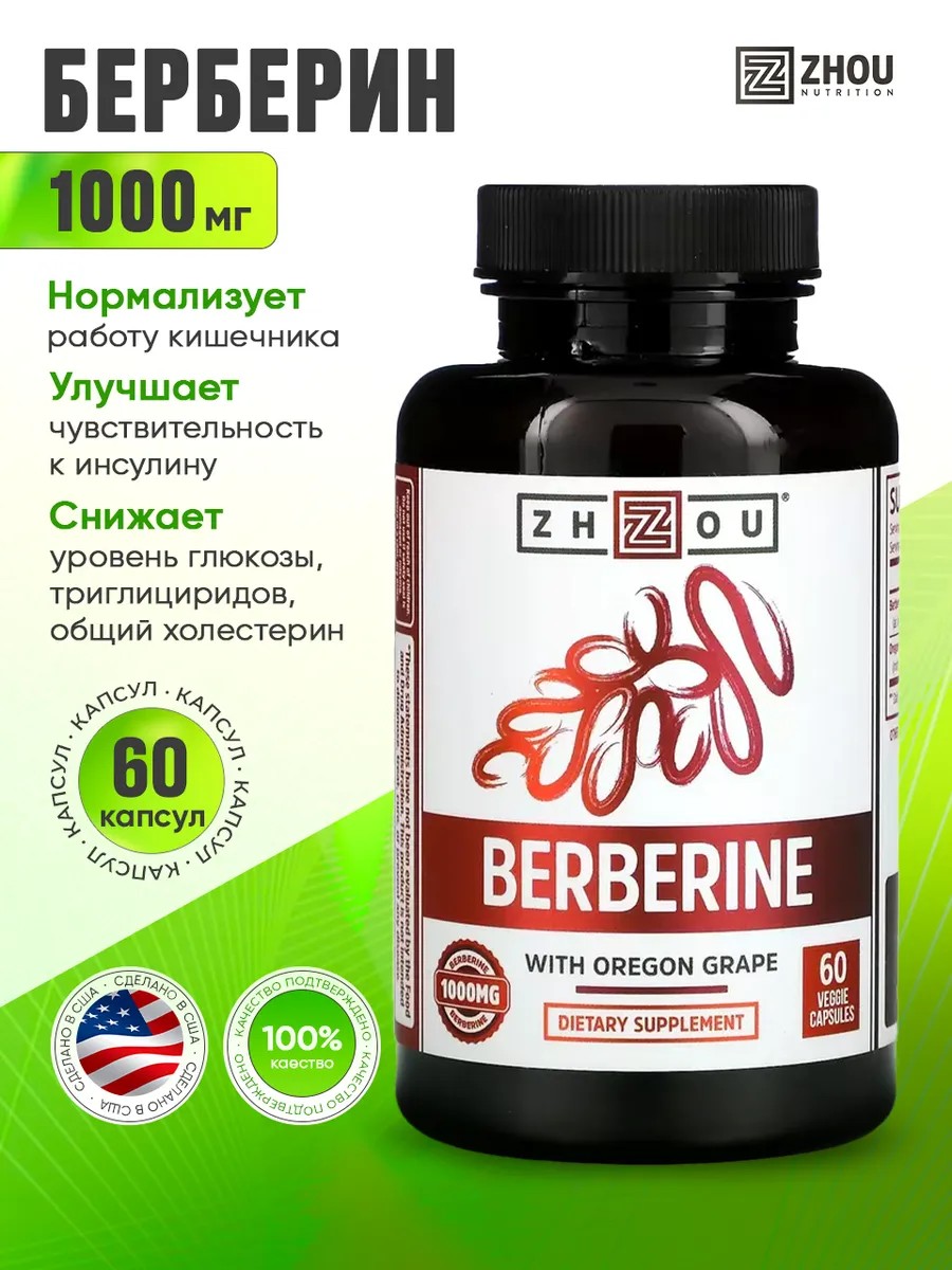 Zhou Nutrition Берберин 1000 мг (США, 100% оригинал) 60 шт. улучшеный