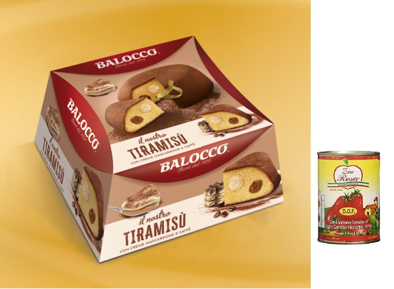 Zia Rosa Balocco My Tiramisu Set of 3 Cakes with Coffee Cream and Mascarpone 650g + Zia Rosa DOP San Marzano Tomatoes 400g Box