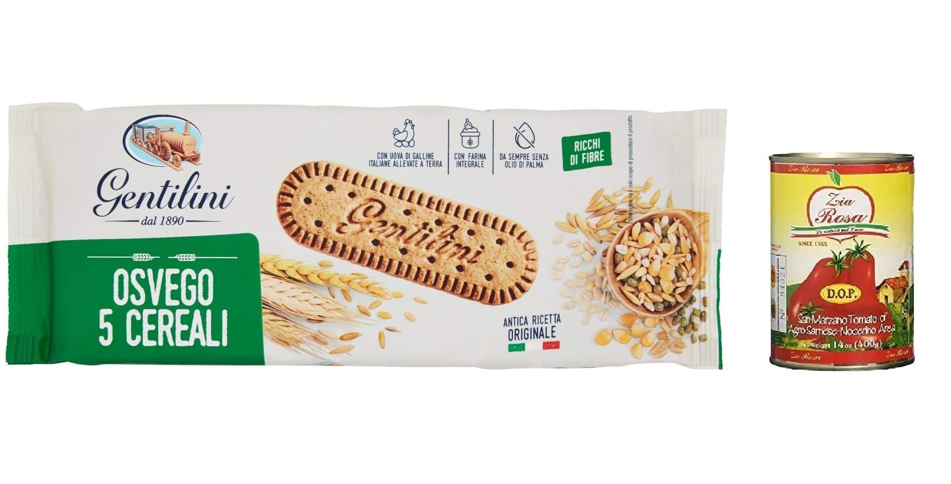 Ingredients: Wheat flour 49 , sugar, wholemeal flour 14 , flour blend 8.5 (barley flakes, rye flakes, oat flakes, soy), butter, fresh eggs 3.4 , high oleic sunflower oil, honey, malt blend (soft wheat flour, roasted soft wheat malt, barley malt), powdered agents: ammonium carbonate - sodium bicarbonate, whole milk powder, corn starch, dextrose, salt, emulsifier: soy lecithin, flavorings, natural flavoring. May contain traces of spelt and mustard. INGREDIENTS Ingredients: Wheat flour 49 , sugar, wholemeal flour 14 , flour blend 8.5 (barley flakes, rye flakes, oat flakes, soy), butter, fresh eggs 3.4 , high oleic sunflower oil, honey, malt blend (soft wheat flour, roasted soft wheat malt, barley malt), powdered agents: ammonium carbonate - sodium bicarbonate, whole milk powder, corn starch, dextrose, salt, emulsifier: soy lecithin, flavorings, natural flavoring. May contain traces of spelt and mustard.Gentilini Biscotti Osvego 5 Cereali Ricchi di Fibre, biscuits avec 5 céréales, riche en fibres 250 g boîte Zia Rosa DOP Pomodoro San Marzano de 400 gDESCRIPTION DU PRODUIT DESCRIPTION DU PRODUIT Ingrédients : farine de blé 49 , sucre, farine complète 14 , mélange de farine 8,5 (flocons d'orge, flocons de seigle, flocons d'avoine, soja), beurre, œufs frais 3,4 , huile de tournesol à haute teneur en acide oléique, miel, mélange de malt (farine de blé tendre, malt de blé tendre rôti, orge. malt), poudreuse Agents : carbonate d'ammonium - hydrogénocarbonate de sodium, poudre de lait entier, amidon de maïs, dextrose, sel, émulsifiant : lécithine de soja, arômes, arôme naturel. Peut contenir des traces d'épeautre et de moutarde. INGRÉDIENTS Ingrédients : farine de blé 49 , sucre, farine complète 14 , mélange de farine 8,5 (flocons d'orge, flocons de seigle, flocons d'avoine, soja), beurre, œufs frais 3,4 , huile de tournesol à haute teneur en acide oléique, miel, mélange de malt (farine de blé tendre, malt de blé tendre rôti, orge. malt), poudreuse Agents : carbonate d'ammonium - hydrogénocarbonate de sodium, poudre de lait entier, amidon de maïs, dextrose, sel, émulsifiant : lécithine de soja, arômes, arôme naturel. Peut contenir des traces d'épeautre et de moutarde.