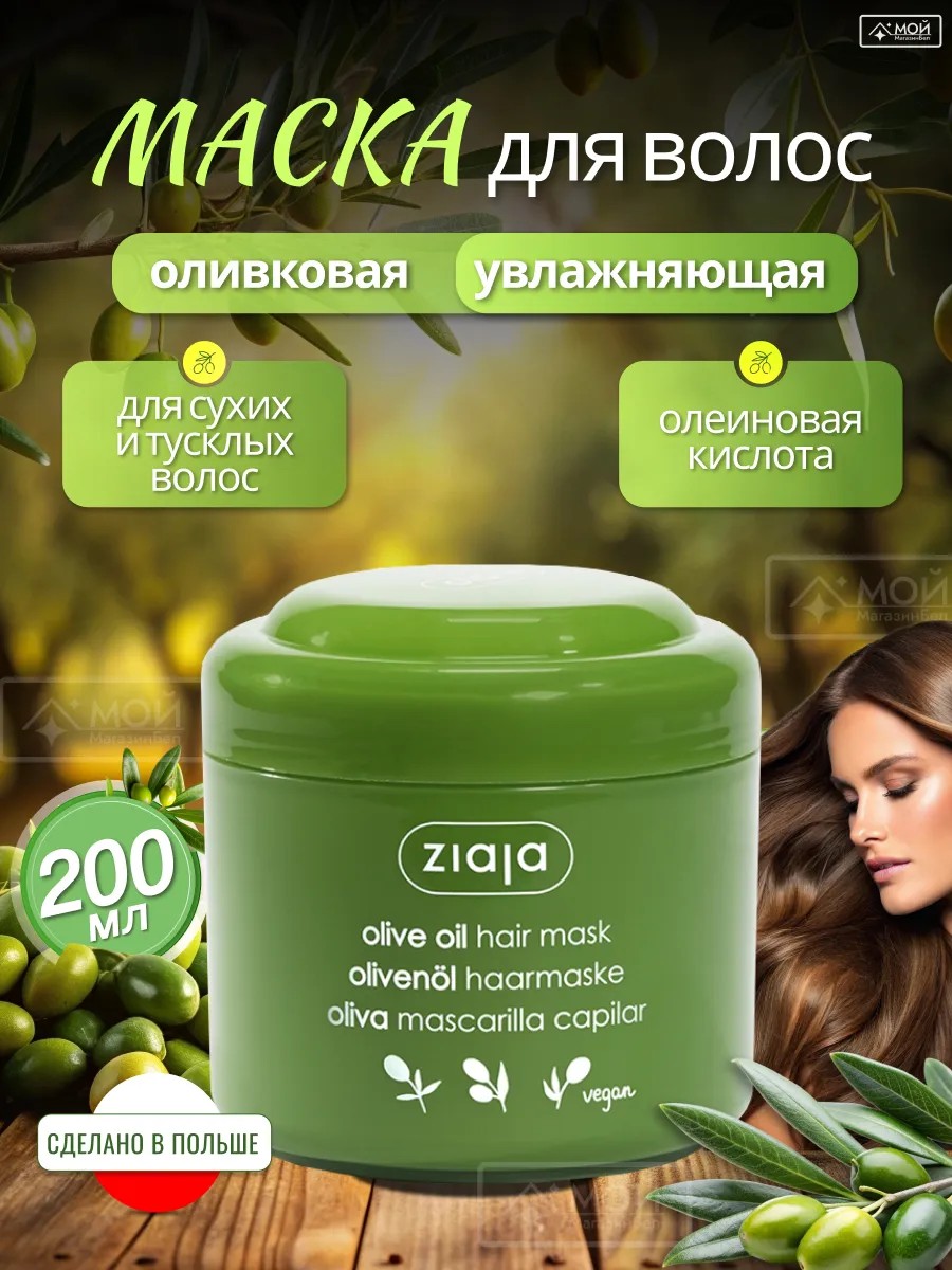 Маска для волос Масло Оливы от польского бренда ЗАЯ обладает более сильными питательными свойствами, чем кондиционер из данной серии, сочетая в себе эффективный подход к регенерации волос. Богатая и густая формула защищает волосы от повреждений. Глубоко восстанавливает, не утяжеляя их. Укрепляет и улучшает их естественную упругость. Делает ваши волосы хорошо ухоженными и здоровыми. Обеспечивает длительное кондиционирование. Оливковое масло содержит витамины, жирные кислоты, сквалан - компоненты. Масло оливы создает защитный слой, который препятствует испарению влаги и не допускает пересыхания. Благодаря высокому содержанию олеиновой кислоты заполняет бреши между кератиновыми чешуйками кутикулы, что создает эффект гладких волос. Защищают волосы от последствий повреждающего воздействия УФ-излучения. Нанесите на чистые влажные волосы, выдержите 3-5 минут, промойте водой. Маска восстанавливающая для сухих и ломких волос "Оливковая" Ziaja, 200 мл. Легко расчесываются. Смываемая подходит для сухих, тусклых, безжизненных волос. Для усиленного эффекта можно добавить несколько капель вашего любимого, например, арганового масла, оставить на 15 минут и получите просто невероятный результат! Шелковистые, блестящие, ухоженные волосы - легко! Оливковая маска богата витаминами, которые восстанавливают структуру волос. Красота волос в ваших руках!