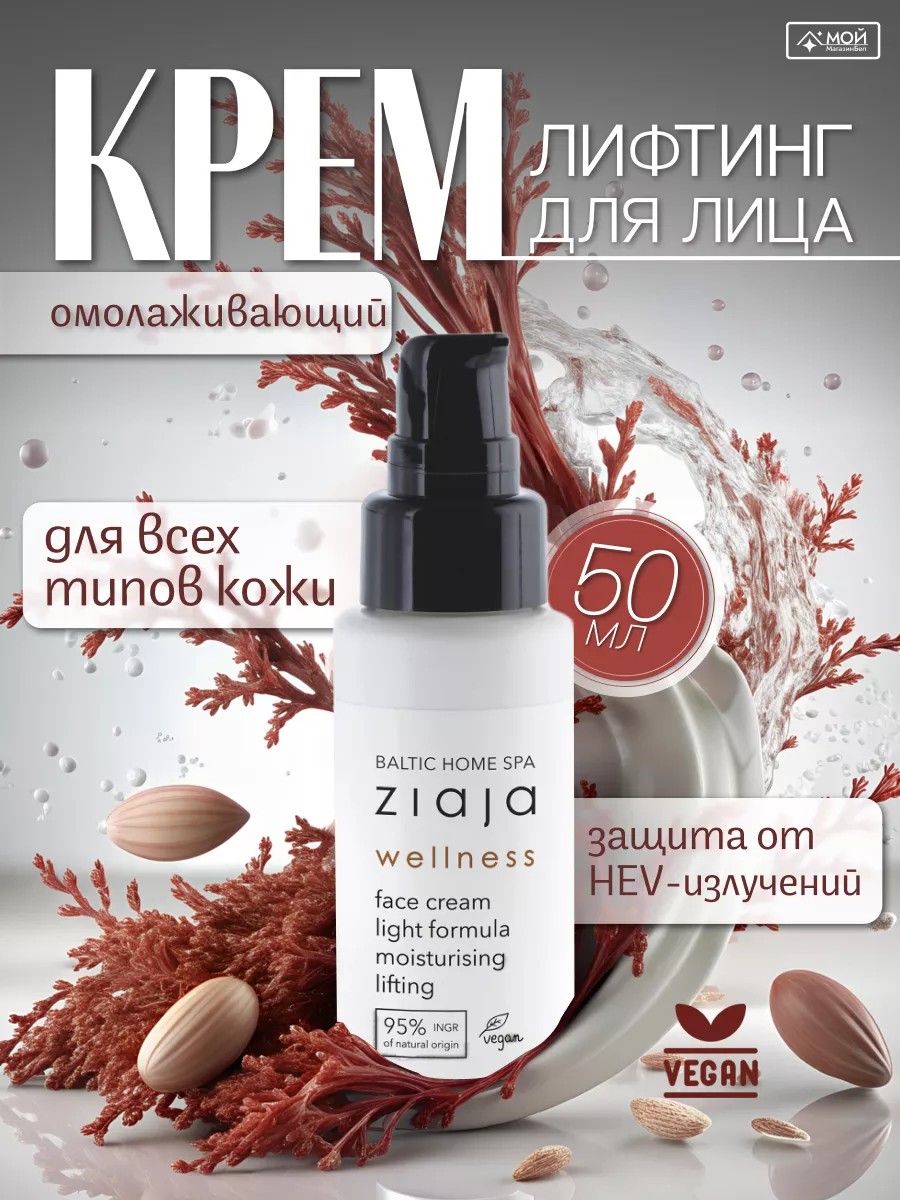 Окунитесь в мир SPA-ухода с кремом для лица Ziaja Baltic Home Spa Wellness — вашим союзником в борьбе за совершенство кожи. Он содержитс 95% ингредиентов натурального происхождения, идеален для веганов. Крем создан для того, чтобы дарить каждому типу кожи индивидуальное внимание, которое она заслуживает, особенно подойдет обезвоженной и сухой. Текстура легкая, мгновенно впитывается, что делает его отличным вариантом для лета и базой перед макияжем. Крем активно увлажняет, тонизирует и оказывает мгновенный антивозрастной эффект, дарит вашей коже здоровое сияние и видимое омоложение.