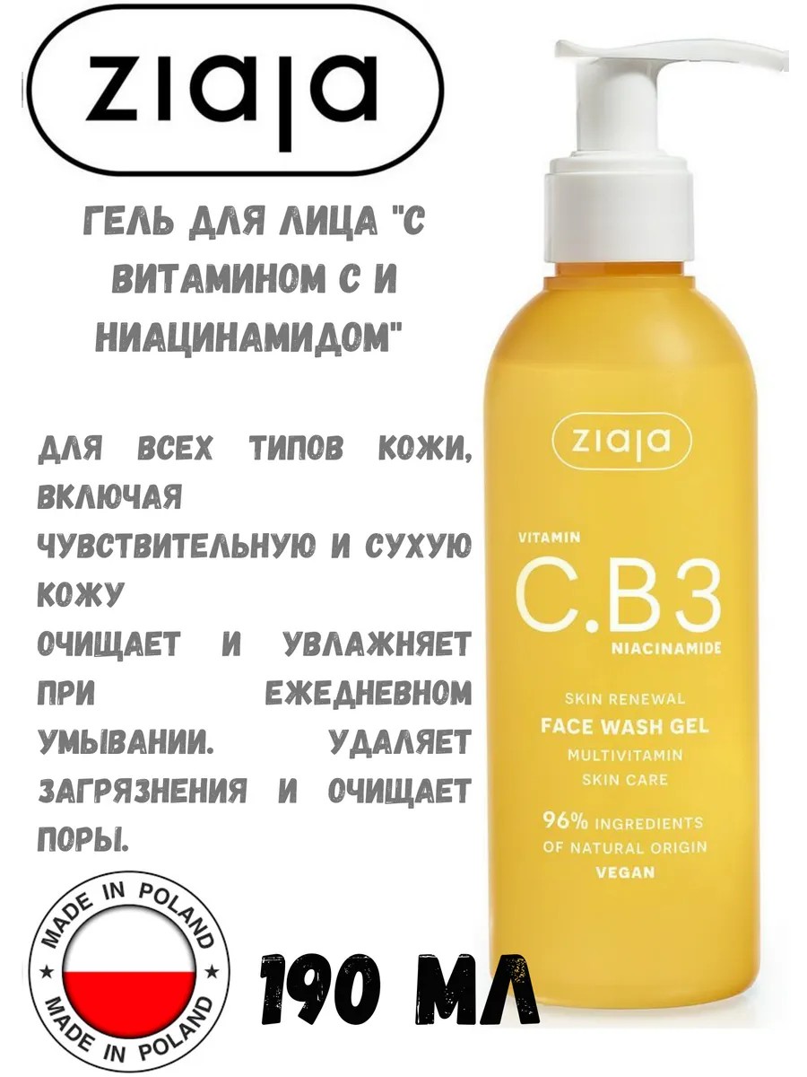 Ziaja Vitamin C.B3 Niacinamide Oil-Free Cleansing Gel is for all skin types, including sensitive and dry skin.