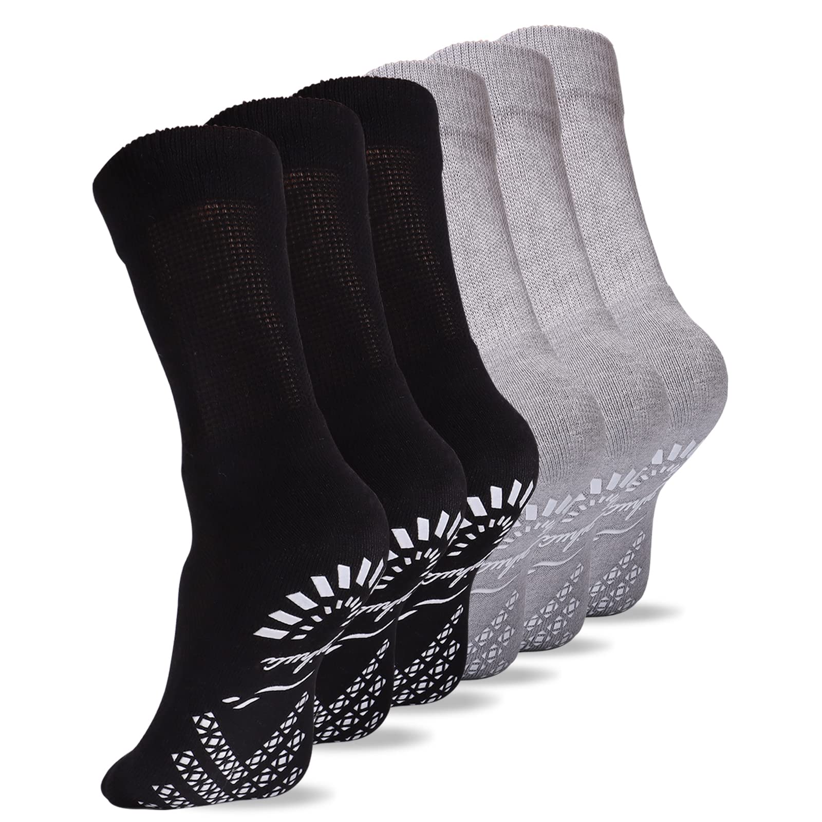 ZIHUA Diabetic Socks 6 Pairs Bamboo Hospital Socks Non-Binding Extra Wide Socks Non-Slip Diabetic Crew Socks Men Women Black+grey 13-15