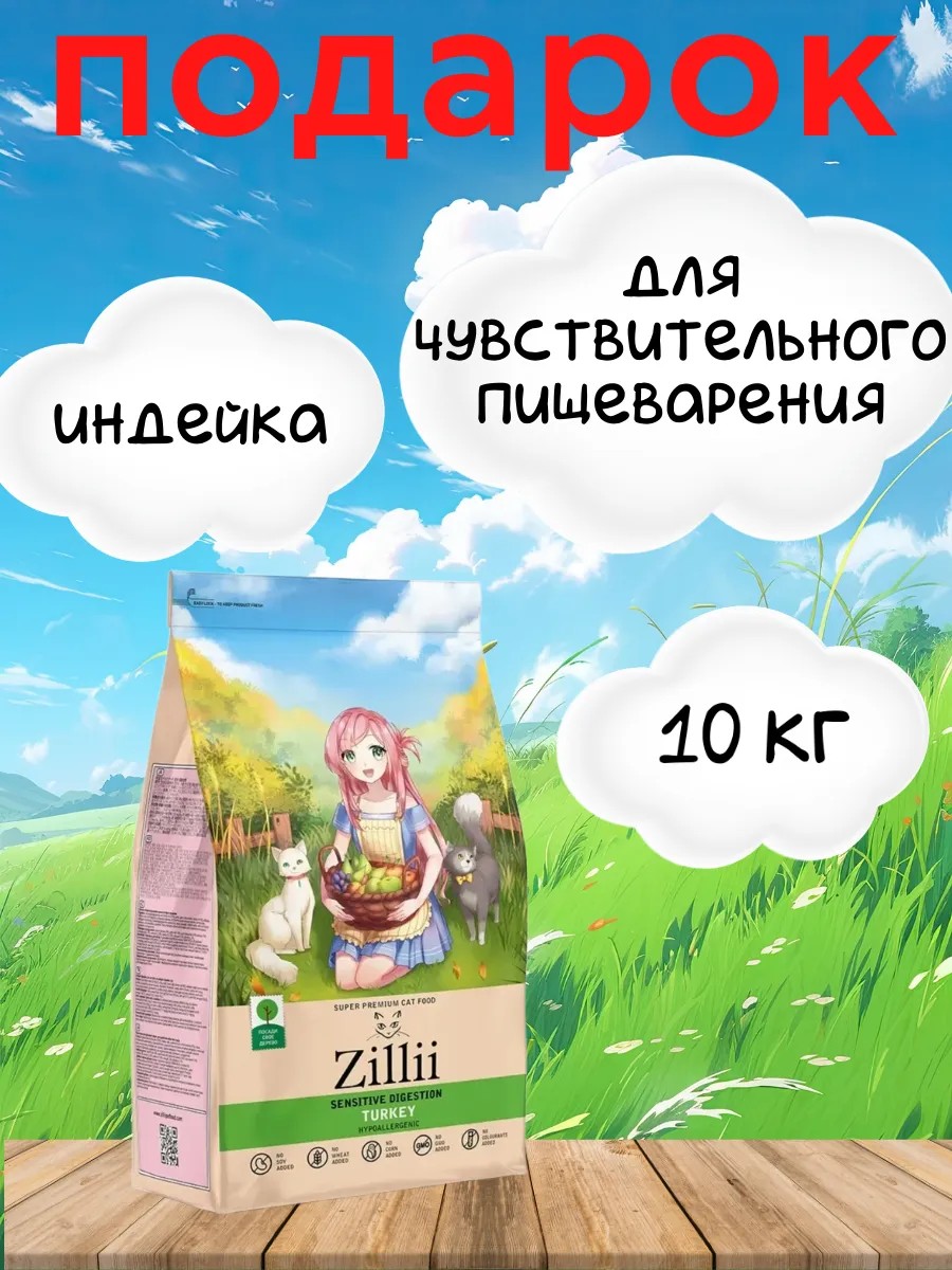 Zillii Корм для кошек с чувствительным пищеварением Индейка 10 кг