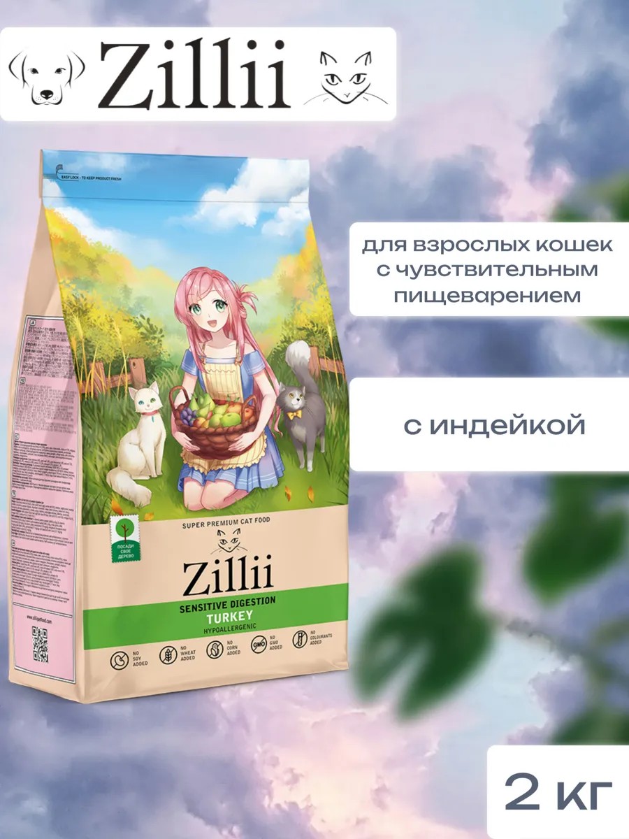 Zillii Корм Зиллии для кошек Sensitive DIGESTION Индейка 2кг