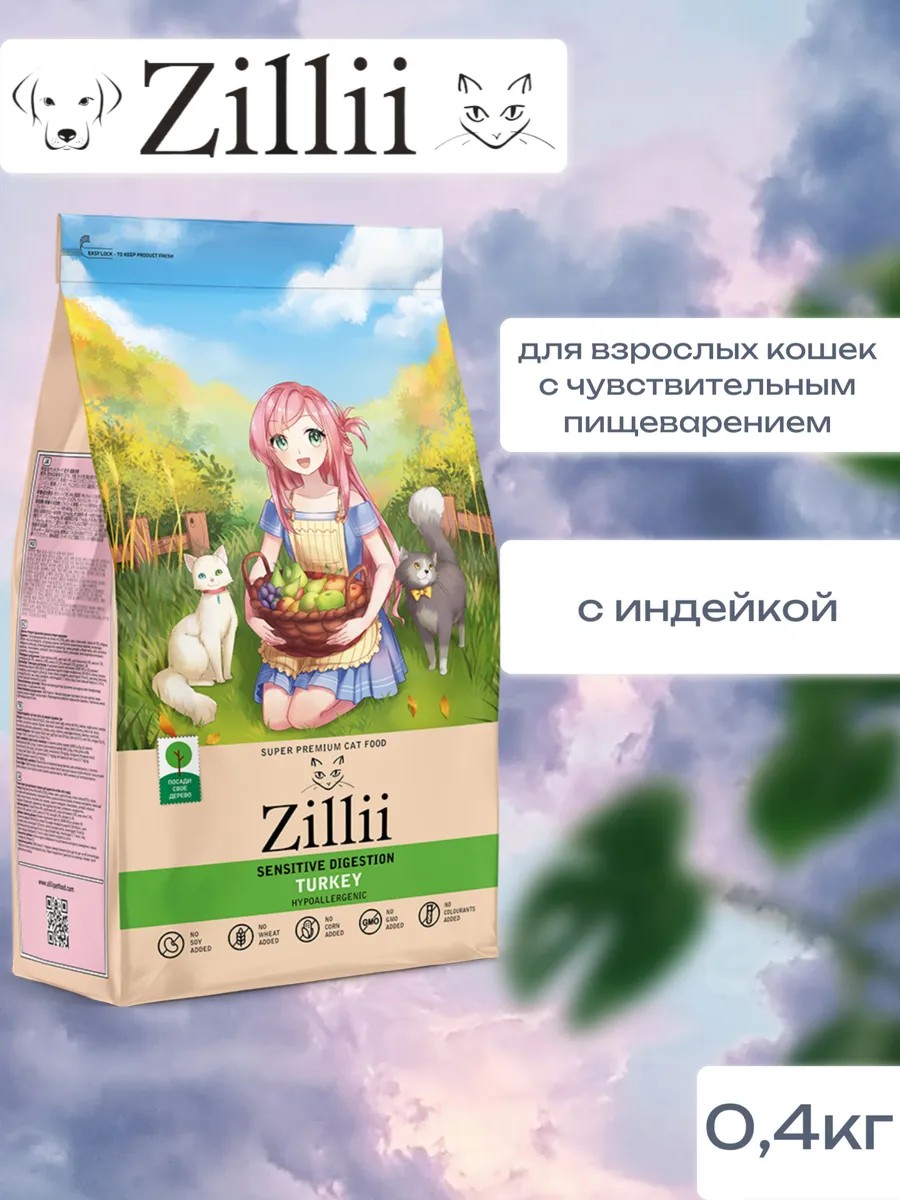 Zillii Корм Зиллии для кошек Sensitive DIGESTION Индейка 400г