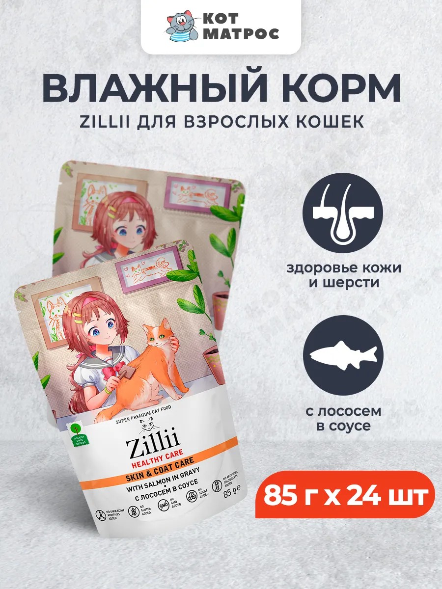 Рецептура влажного корма ZILLII HEALTHY CARE SKIN & COAT CARE предназначена для поддержания здоровья кожи и шерсти.