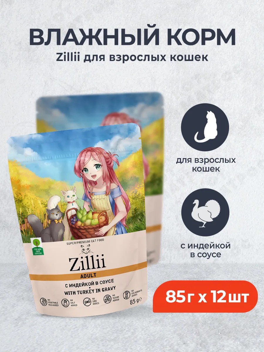 влажный корм для кошек с индейкой, в паучах - 85 х 12 шт
