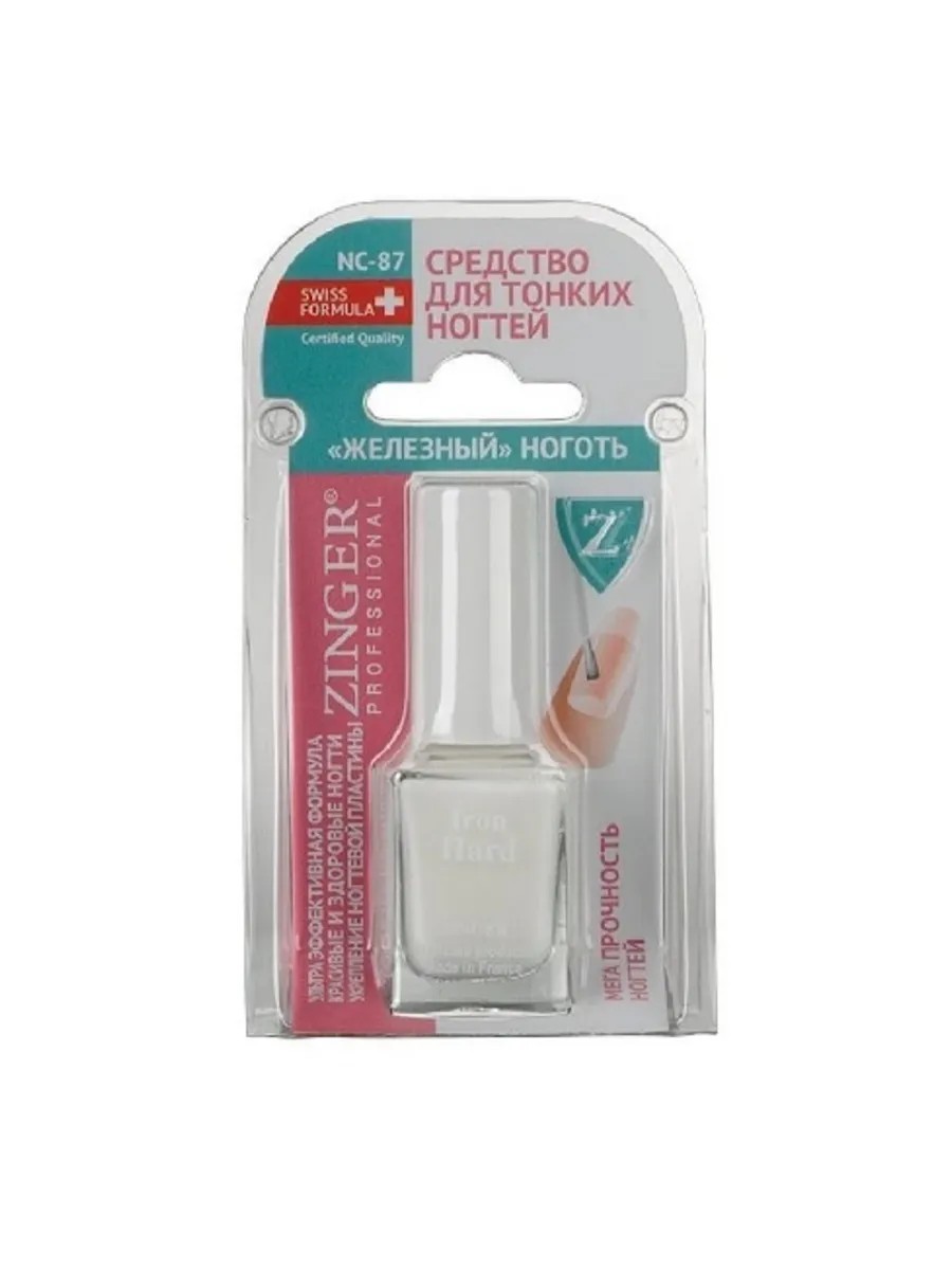 Zinger NC-87 "Iron" Nail Care is designed for thin nails by Zinger. It evens out the nail plate after gel and acrylic application. This ultra-effective formula, an SOS treatment for MEGA nail strength, strengthens the nail plate and protects it from splitting. Normal nail growth is restored with regular use.