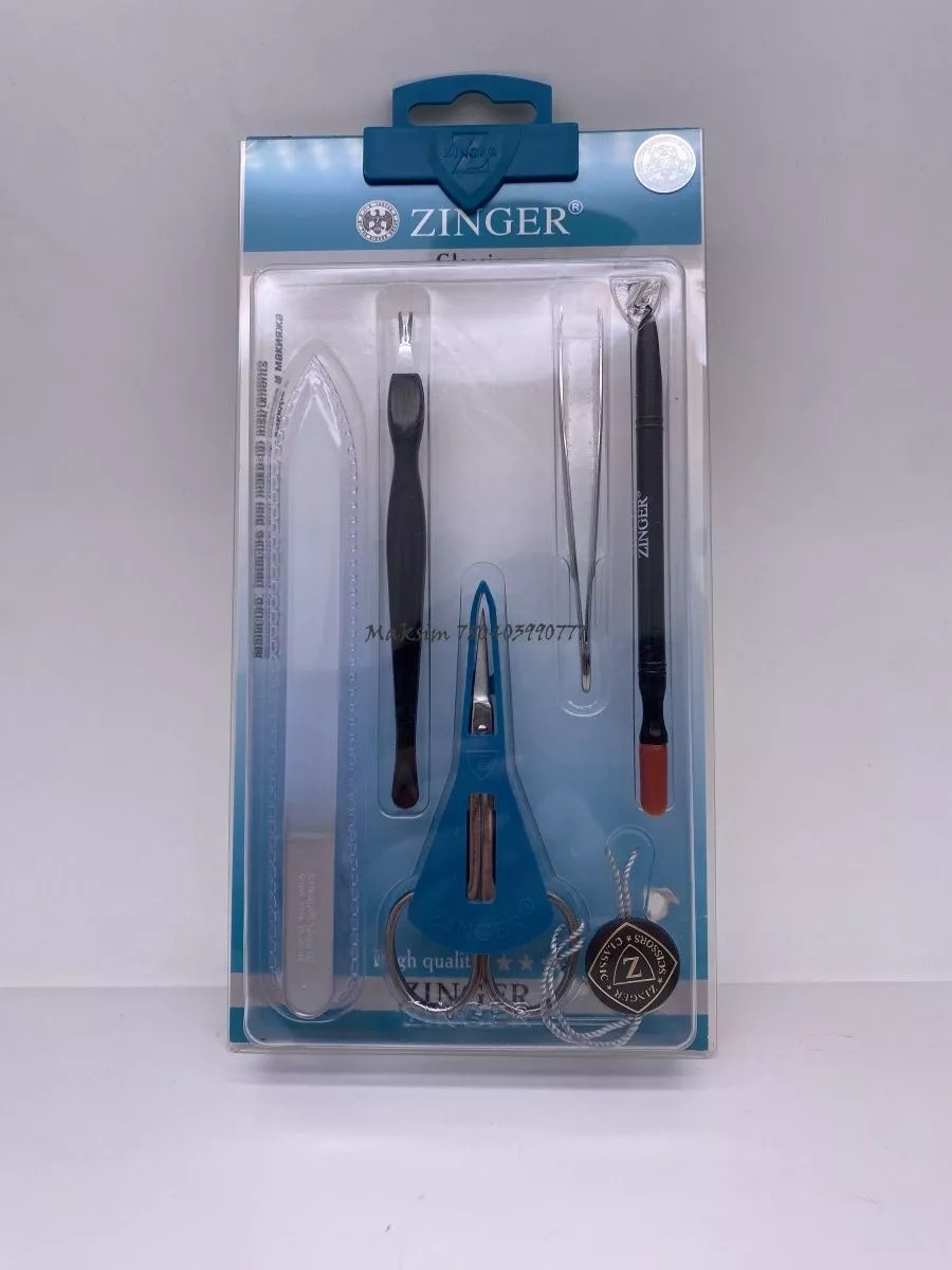 Zinger manicure set, scissors, angled tweezers, trimmer, pusher, and file. Imagine everything you need for daily grooming in one convenient and beautiful case. Now it's possible: the Zinger manicure set with cosmetic bag neatly collects all the essential tools for hand and nail care. The variety of manicure accessories and cosmetics in your Zinger set may seem daunting to the uninitiated, but for sophisticated and self-aware ladies, this is the bare minimum. High-quality steel, professional hand sharpening, and German quality control are the ingredients for superior manicure tools, the foundation upon which the renowned Zinger company has built its reputation.