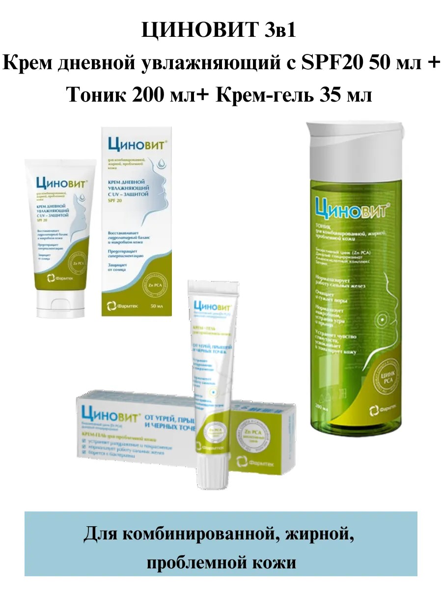 циновит 3в1 Крем SPF20 50 мл+Тоник 200мл+Крем-гель 35мл