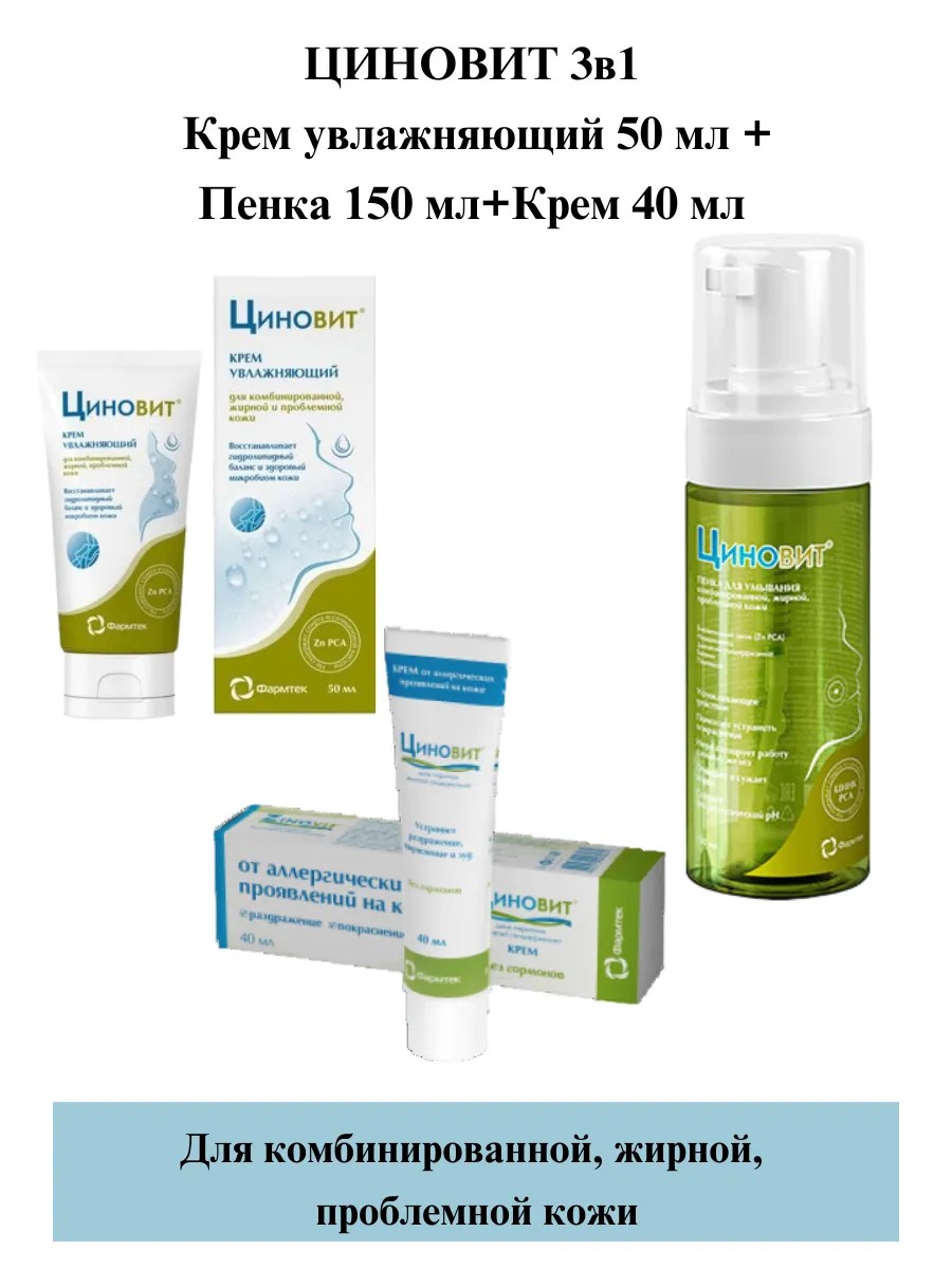 циновит 3в1 Крем увлажняющий 50 мл+Пенка 150мл+Крем 40мл