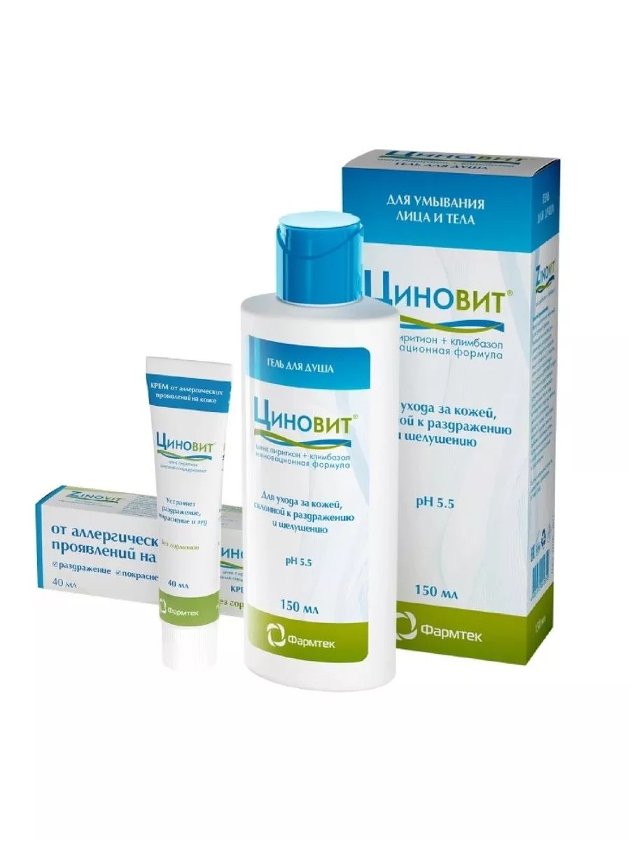 Гель для душа Циновит – это прекрасный выбор для людей, которые хотят заботиться о своей коже. Благодаря уникальному составу на основе Цинк пиритиона -Климбазола -Мочевины, гель эффективно увлажняет, успокаивает и защищает кожу от воздействия окружающей среды. Он легко наносится и хорошо пенится, образуя мягкую и нежную пену, которая приятно пахнет. Гель для душа Циновит очищает кожу от загрязнений, сохраняя при этом ее естественный баланс влаги. Регулярное использование данного средства позволит сохранить кожу гладкой, упругой и здоровой.Циновит крем - универсальное средство для борьбы с аллергическими проявлениями на коже. Крем обладает успокаивающим действием, устраняет раздражения и шелушение кожи. Применяется во всех случаях, когда противопоказаны наружные глюкокортикоиды, в том числе на коже лица. Подходит для ежедневного использования, не пересушивает кожу и не оставляет жирного блеска. Средство легко наносится и быстро впитывается, не оставляя следов на одежде.
