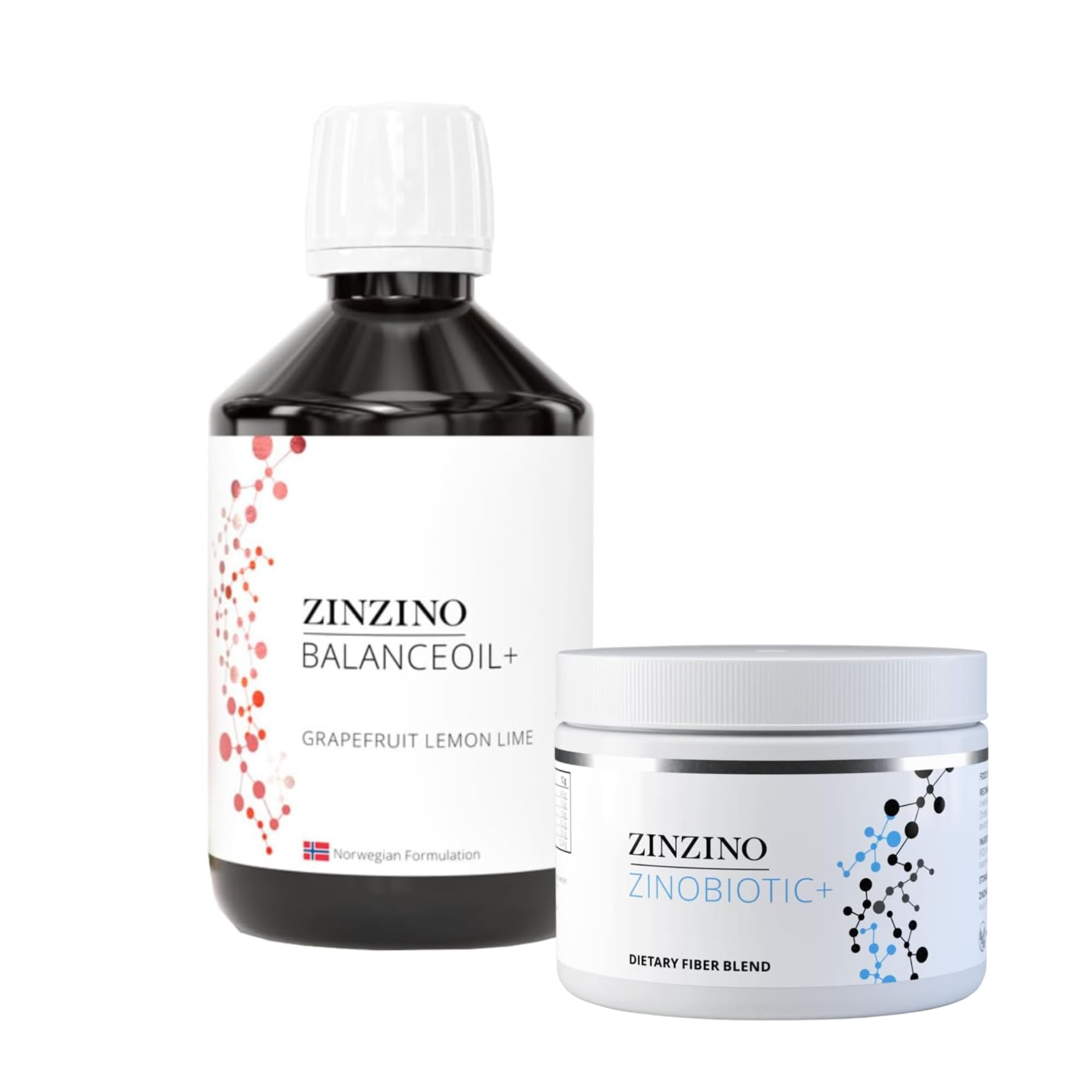 ZinZino Duo Kit Grapefruit, Lemon-Lime A high-quality combination of BalanceOil with a fresh fruit taste and ZinoBiotic with carefully selected fibers. Ideal for daily use. Kit contents: BalanceOil 300 ml, ZinoBiotic . INGREDIENTS Balance Oil: Ingredients include fish oils (anchovy, mackerel, sardine), cold-pressed olive oil, tocopherol-rich extracts (antioxidants), natural flavors , vitamin D3 (cholecalciferol). Natural Lemon Flavor Natural Orange, Lemon, and Mint Flavor Natural Grapefruit, Lemon, and Lime Flavor Zinobiotic: Resistant Corn Starch , Oat Beta-Glucans , Inulin, Oligofructose, Resistant Potato Starch, Psyllium Husks, Partially Hydrolyzed Guar Flour from Guar Beans, Resistant Green Banana Starch. Origin: EU. Note: BalanceOil , 100 ml, available only in orange, lemon, and mint flavor. SAFETY WARNING Food supplements are not a substitute for a balanced and varied diet and a healthy lifestyle. Do not exceed the recommended daily intake. Keep out of reach of children. Store in a cool, dry place away from direct sunlight. See moreComplete Duo - Oil Fiber Kit. No artificial additives - Pure formula. ZinoBiotic - Selected fibers. Natural flavor - grapefruit, lemon, lime. Scandinavian quality - Premium Omega-3 oil.ZinZino Duo Kit - BalanceOil Pamplemousse Citron-Lime 300ml ZinoBiotic Poudre - Pack Combo Arôme Fruit NaturelDESCRIPTION DU PRODUIT DESCRIPTION DU PRODUIT ZinZino Duo Kit Pamplemousse, Citron-Lime Combinaison de haute qualité BalanceOil au goût de fruits frais et de ZinoBiotic avec des fibres soigneusement sélectionnées. Idéal pour une utilisation quotidienne. Contenu du kit : BalanceOil 300 ml, ZinoBiotic . INGRÉDIENTS Huile d'équilibre : ingrédients huiles de poisson (d'anchois, maquereaux, sardines), huile d'olive pressée à froid, extraits riches en tocophérol (antioxydants), arômes naturels , vitamine D3 (cholécalciférol). Arôme naturel de citron Arôme naturel d'orange, citron, menthe Arôme naturel de pamplemousse, citron, citron vert Zinobiotic : amidon de maïs résistant , bêta-glucanes d'avoine , inuline, oligofructose, amidon de pomme de terre résistant, coquilles de psyllium, farine de guar partiellement hydrolysée à partir de haricots de guar, amidon résistant de bananes vertes. Origine : UE. Remarque : BalanceOil , 100 ml, disponible uniquement en arôme orange, citron et menthe AVERTISSEMENT DE SÉCURITÉ Les compléments alimentaires ne remplacent pas une alimentation équilibrée et variée et un mode de vie sain. Ne pas dépasser la dose journalière recommandée. Tenir hors de portée des enfants. Conserver dans un endroit sec, frais et à l'abri de la lumière directe du soleil. Voir plusDuo complet - Kit Huile Fibres. Sans additifs artificiels - Formule pure. ZinoBiotic - Fibres sélectionnées. Goût naturel - pamplemousse, citron, citron vert. Qualité Scandinave - Huile Premium Omega-3.