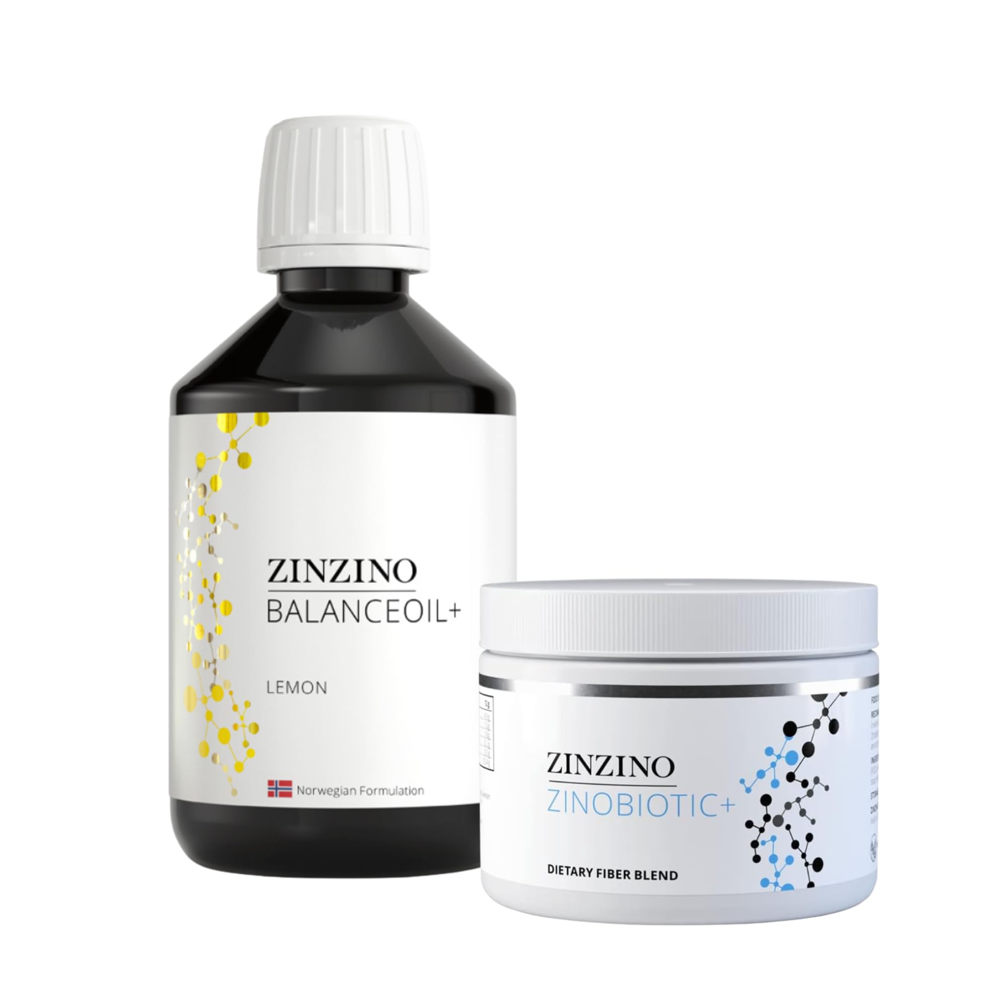 ZinZino Duo Kit Lemon Premium Scandinavian formula with BalanceOil Lemon and ZinoBiotic . High-quality omega-3 oil and soluble fiber in one. Kit contents: BalanceOil Lemon 300 ml, ZinoBiotic . INGREDIENTS Ingredients: Fish oils (obtained from anchovies, mackerel, sardines), cold-pressed olive oil, tocopherol extracts (antioxidants), natural flavorings , vitamin D3 (cholecalciferol). Natural lemon flavor Natural orange, lemon, and mint flavor Natural grapefruit, lemon, and lime flavor Note: BalanceOil , 100 ml, is only available in orange, lemon, and mint flavors. SAFETY WARNING Food supplements are not a substitute for a balanced and varied diet and a healthy lifestyle. Do not exceed the recommended daily dose. Keep out of reach of children. Store in a cool, dry place away from direct sunlight. See moreComplete duo – ideal for everyday use. No artificial additives – pure ingredients. BalanceOil ZinoBiotic – the perfect combination. Fresh lemon flavor. Scandinavian quality – precisely developed.ZinZino Duo Kit - BalanceOil Citron 300ml ZinoBiotic - Coffret Complément Alimentaire Saveur Citron FraîcheDESCRIPTION DU PRODUIT DESCRIPTION DU PRODUIT ZinZino Duo Kit Citron Formule scandinave premium avec BalanceOil Lemon et ZinoBiotic . Huile oméga-3 de haute qualité et fibres solubles dans un seul lot. Contenu du kit : BalanceOil Lemon 300 ml, ZinoBiotic . INGRÉDIENTS Ingrédients huiles de poisson (obtenues à base d'anchois, maquereau, sardine), huile d'olive pressée à froid, extraits de tocophérol (antioxydants), arômes naturels , vitamine D3 (cholécalciférol). Arôme naturel de citron Arôme naturel d'orange, citron, menthe Arôme naturel de pamplemousse, citron, citron vert Remarque : BalanceOil , 100 ml, disponible uniquement en arôme orange, citron et menthe AVERTISSEMENT DE SÉCURITÉ Les compléments alimentaires ne remplacent pas une alimentation équilibrée et variée et un mode de vie sain. Ne pas dépasser la dose journalière recommandée. Tenir hors de portée des enfants. Conserver dans un endroit sec, frais et à l'abri de la lumière directe du soleil. Voir plusDuo complet - Idéal pour un usage quotidien. Sans additifs artificiels - Ingrédients purs. BalanceOil ZinoBiotic - Combinaison parfaite. Goût frais - Citron. Qualité scandinave - Développé avec précision.