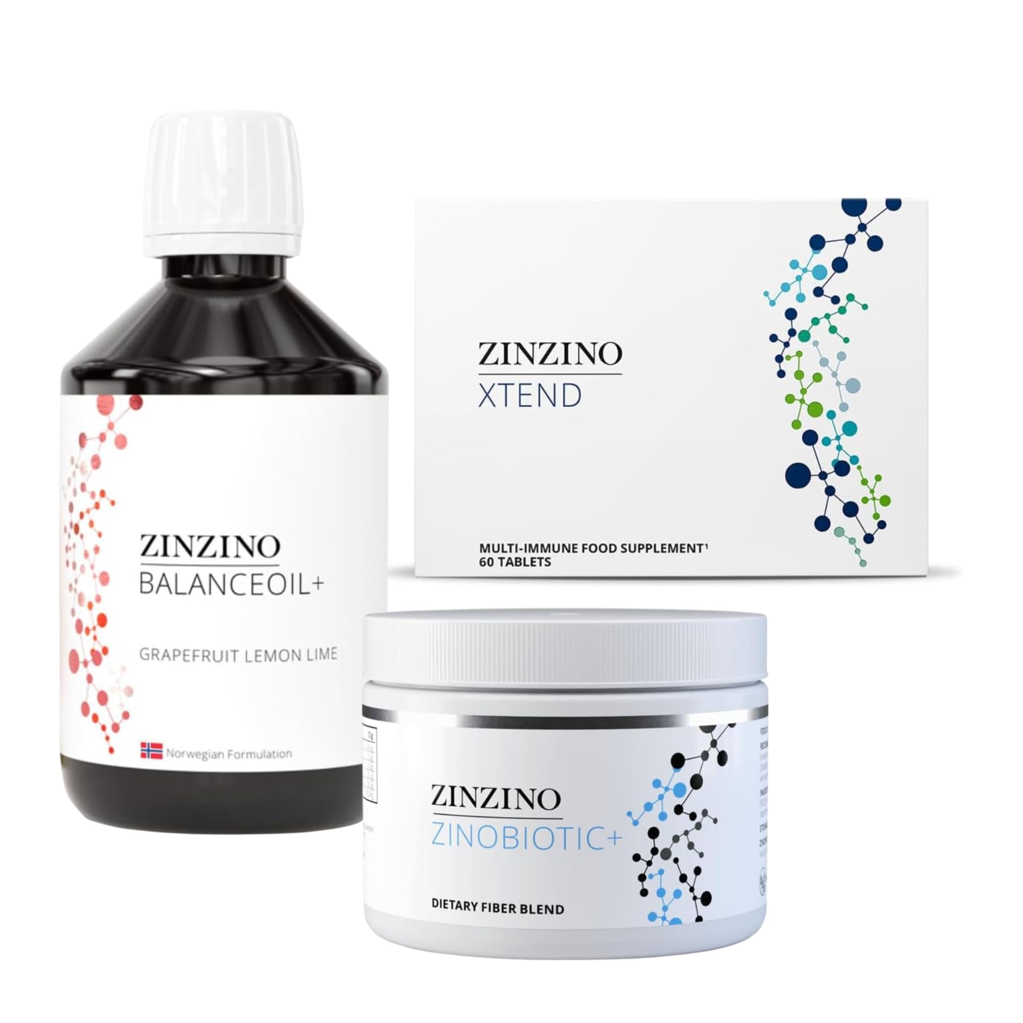 ZinZino Health Protocol Kit - Grapefruit, Lemon, Lime Premium set with BalanceOil (300 ml) with a fresh fruit flavor, ZinoBiotic with fiber, and Xtend with micronutrients. Developed in Scandinavia for mindful eating. The kit includes: BalanceOil 300 ml, ZinoBiotic , Xtend. INGREDIENTS Ingredients: Fish oils (obtained from anchovies, mackerel, sardines), cold-pressed olive oil, tocopherol extracts (antioxidants), natural flavors , vitamin D3 (cholecalciferol). Natural lemon flavor Natural orange, lemon, and mint flavor Natural grapefruit, lemon, and lime flavor Note: BalanceOil , 100 ml, only available in orange, lemon, and mint flavor. Zinobiotic: Resistant maize starch , oat beta-glucans , inulin, oligofructose, resistant potato starch, psyllium. Partially hydrolyzed boluses: guar flour, infused guar, resistant green banana starch. Origin: EU. SAFETY WARNING Food supplements are not a substitute for a balanced and varied diet and a healthy lifestyle. Do not exceed the recommended daily intake. Keep out of reach of children. Store in a cool, dry place away from direct sunlight. See moreCOMPLETE KIT - Ideal for daily use. No artificial additives - Pure ingredients. Contains ZinoBiotic Xtend - Perfect combination. Fresh taste: grapefruit, lemon, and lime. Premium Scandinavian quality - High-quality formula.ZinZino Health Protocol Kit - BalanceOil Pamplemousse Citron-Lime 300ml ZinoBiotic Xtend - Kit Complet PremiumDESCRIPTION DU PRODUIT DESCRIPTION DU PRODUIT ZinZino Health Protocol Kit pamplemousse, citron, citron vert Coffret de qualité supérieure avec BalanceOil (300 ml) au goût de fruits frais, ZinoBiotic avec fibres et Xtend aux micronutriments. Développé en Scandinavie pour une alimentation consciente. Le kit comprend : BalanceOil 300 ml, ZinoBiotic , Xtend. INGRÉDIENTS Ingrédients huiles de poisson (obtenues à base d'anchois, maquereau, sardine), huile d'olive pressée à froid, extraits de tocophérol (antioxydants), arômes naturels , vitamine D3 (cholécalciférol). Arôme naturel de citron Arôme naturel d'orange, citron, menthe Arôme naturel de pamplemousse, citron, citron vert Remarque : BalanceOil , 100 ml, uniquement disponible en arôme orange, citron et menthe Zinobiotic : amidon de maïs résistant , bêta-glucanes d'avoine , inuline, oligofructose, amidon de pomme de terre résistant, psyllium Bols partiellement hydrolytiques farine de guar infusée de guar, amidon résistant de banane verte. Origine : UE. AVERTISSEMENT DE SÉCURITÉ Les compléments alimentaires ne remplacent pas une alimentation équilibrée et variée et un mode de vie sain. Ne pas dépasser la dose journalière recommandée. Tenir hors de portée des enfants. Conserver dans un endroit sec, frais et à l'abri de la lumière directe du soleil. Voir plusKIT COMPLET - Idéal pour un usage quotidien. Sans additifs artificiels - Ingrédients purs. Contient ZinoBiotic Xtend - Combinaison parfaite. Goût frais : pamplemousse, citron et citron vert. Qualité scandinave premium - Formule de haute qualité.
