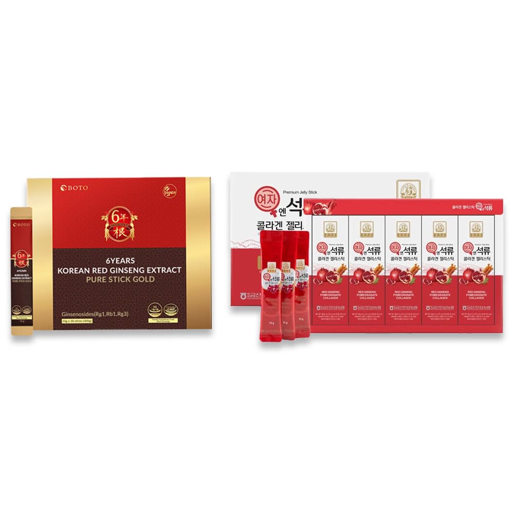 ZIOSTAND BOTO & Baekje Geumsan Daily Wellness Set 30 Red Ginseng + 30 Collagen Jelly Sticks for Energy & Skin